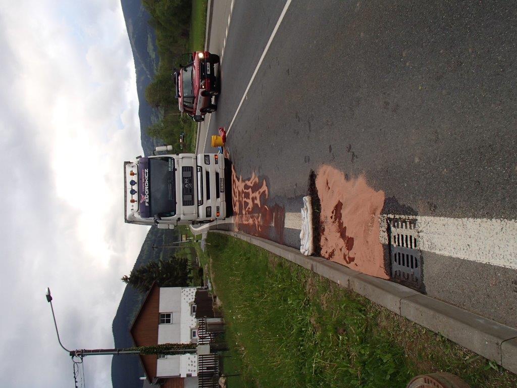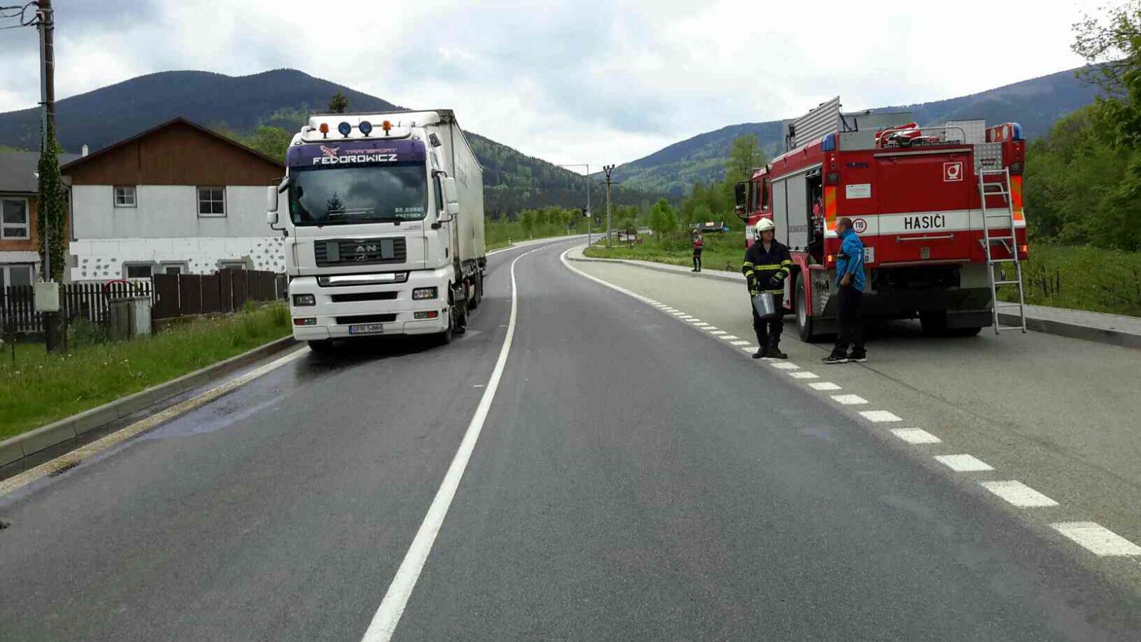 Ve středu 24. května 2017 byli v 17:03 hodin vysláni profesionální hasiči z Jeseníku do obce Bělá pod Pradědem k nehodě kamionu s následným únikem nafty.