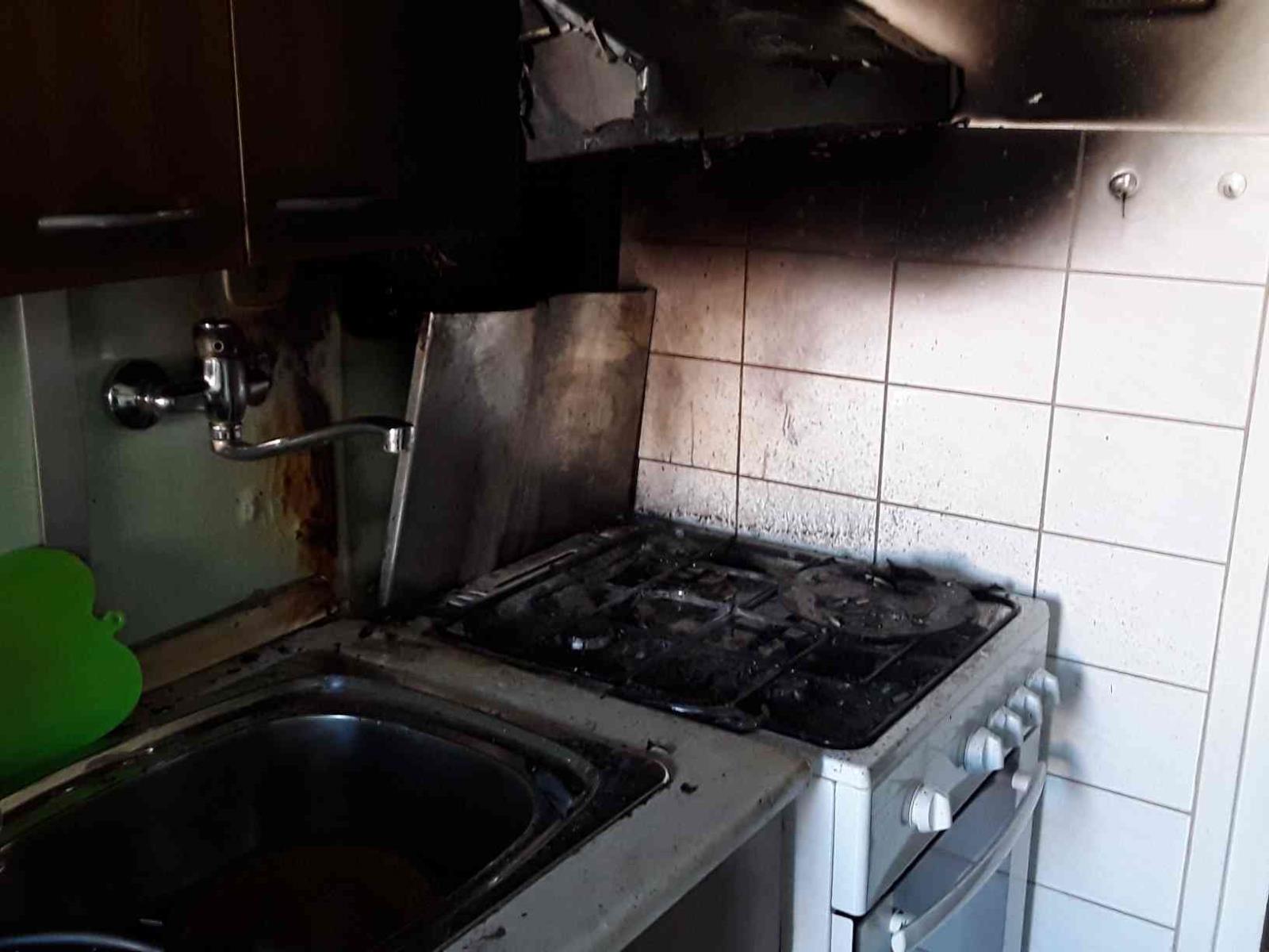 Na místo vyjeli profesionální hasiči z Přerova s výškovou technikou, hasiči Správy železniční dopravní cesty a dobrovolní hasiči z Přerova. Po příjezdu hasiči viděli hustý dým valící se z okna bytu v 5. patře bytového domu. Uvnitř bytu byla majitelka, kterou plameny lehce popálily. Oheň zachvátil část kuchyňské linky a digestoř, poškozeny byly také plastové vodovodní trubky v domě. Hasiči uzavřely přívod vody a plameny zlikvidovali během několika minut. Celý dům byl zakouřen, proto ho hasiči přirozenou ventilací odvětrali.