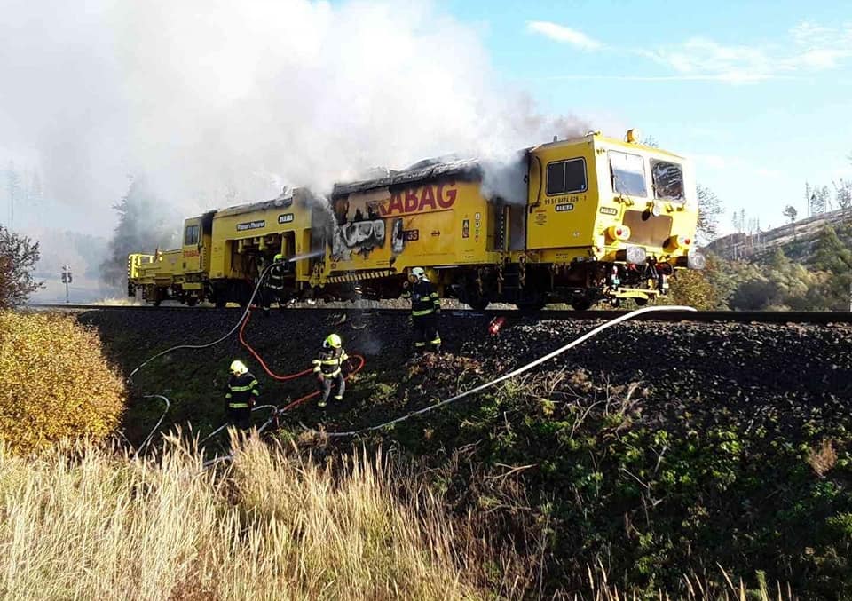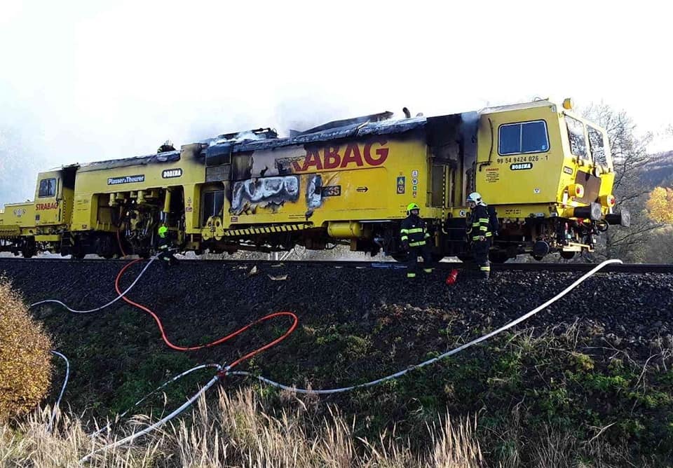 Sedm jednotek profesionálních i dobrovolných hasičů likvidovalo na trati mezi Domašovem nad Bystřicí a Moravským Berounem požár kolejového vozidla, tzv. podbíječky.