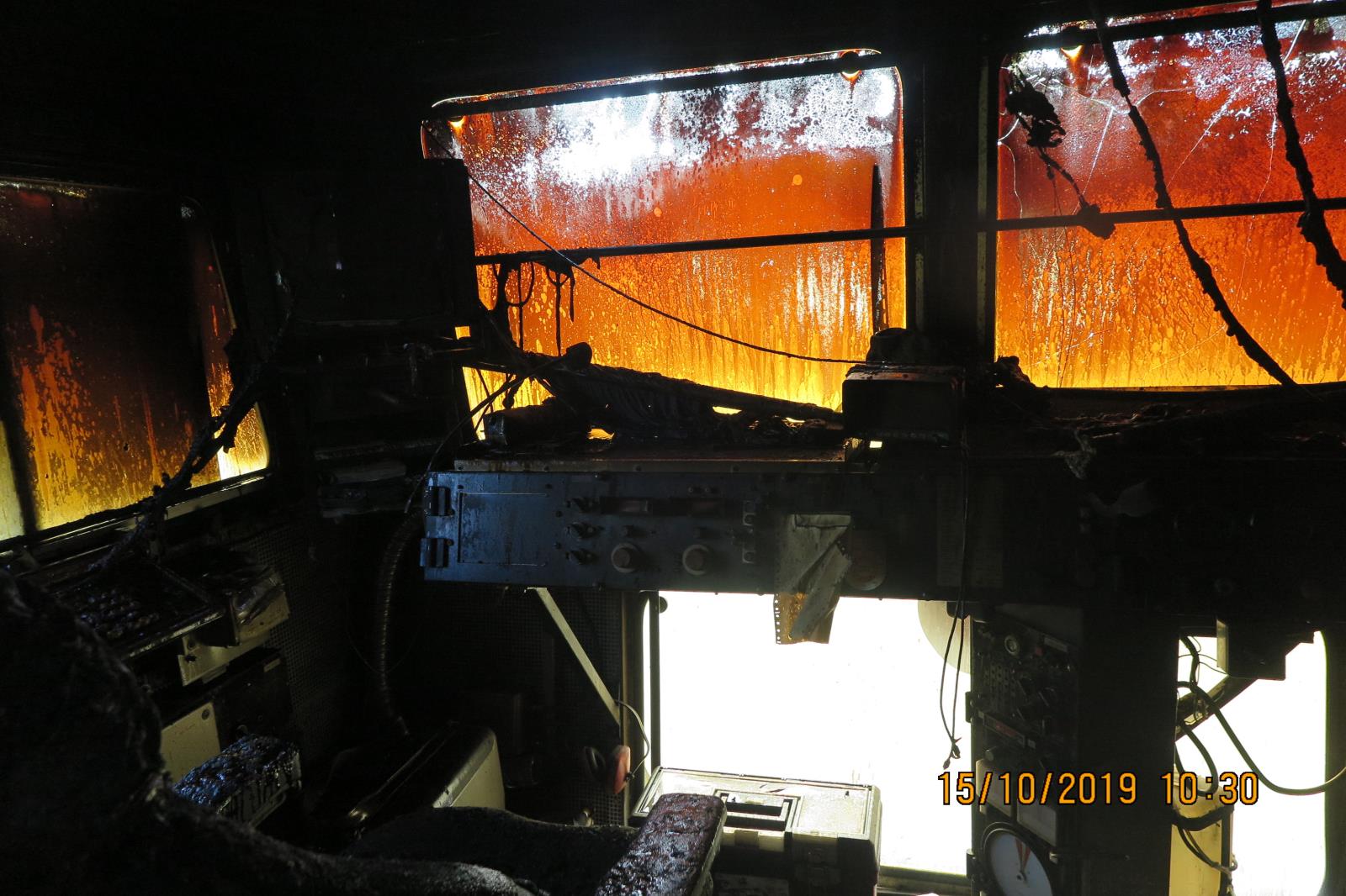 Mnohatunový stavební stroj, který slouží ke zhutňování štěrku pod pražci při úpravách železničního svršku, hořel nedaleko přejezdu ve směru na Hraničné Petrovice. Oznámení o požáru přijelo krajské operační středisko v 9 hodin. Po příjezdu na místo hasiči při průzkumu zjistili, že požár vznikl ve střešní části vozidla v místech, kde se nachází motor. Hasiči plameny dostali pod kontrolu během půl hodiny za použití speciálního hasebního přípravku - smáčedla, které se používá ke zvýšení hasebního efektu. Jednotky také musely řešit únik provozních kapalin. Po skončení dohašovacích prací bylo vozidlo odtaženo na nádraží v Domašově nad Bystřicí. Během zásahu byla trať i místní komunikace uzavřena.
