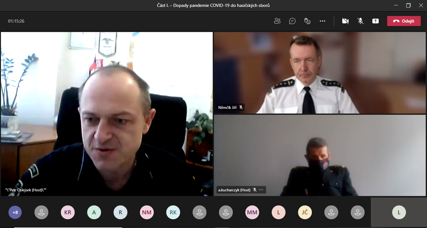 Dnešní videokonference navázala na úterní část workshopu, během níž si hasiči předávali informace a zkušenosti, jak zvládat pandemii uvnitř jednotlivých sborů, jaká režimová opatření byla přijata, aby byla udržena akceschopnost jednotek, a tak bylo zamezeno šíření koronaviru.