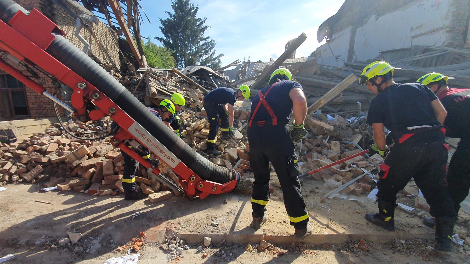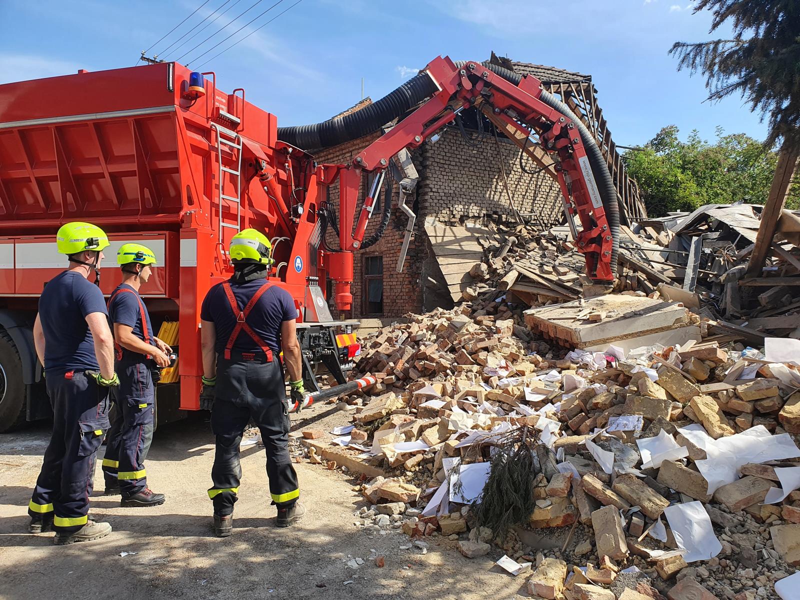 Na vyhledávání osob v sutinách byli nasazeni kynologové se speciálně vycvičenými psy. S odklízením sutin pomáhala padesátce hasičů z 8 jednotek i těžká technika, a to konkrétně sací bagr ze ZÚ v Hlučíně. Na místo byl povolán též usar tým z HZS Moravskoslezského kraje, který se specializuje na vyhledávání osob ve zřícených budovách a na stabilizaci poškozených objektů. Ve spolupráci s kolegy jsme museli jeden ze sousedních domů kvůli poškození štítové zdi stabilizovat pomocí výdřevy a speciálního pažení. Zároveň jsme instalovali inklinometry, které kontrolují pohyb poškozených konstrukcí, abychom zajistili bezpečnost zasahujících jednotek. Hasiči-lezci provizorně opravili střechy protějších domů, které výbuch také poškodil.