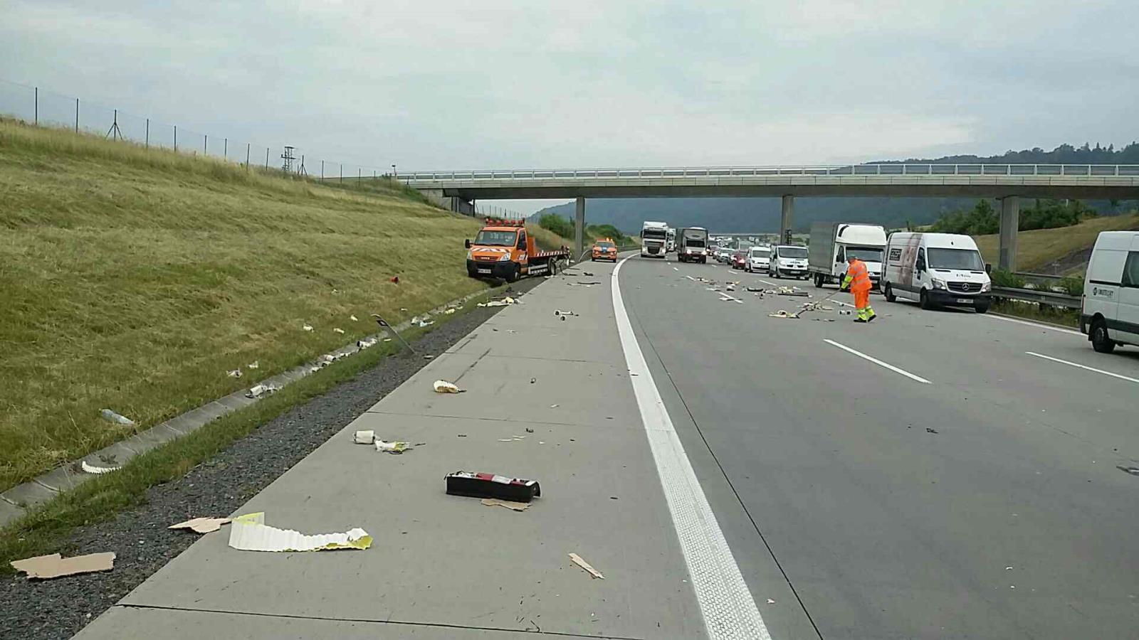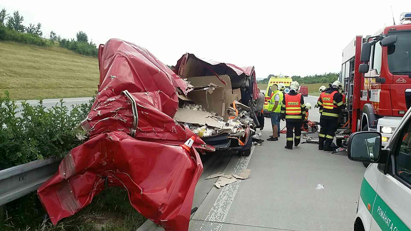 Před naložením vozidla na odtahovou službu bylo potřeba ještě odstranit plechy trčící z havarované dodávky a následně hasiči pomohli s jejím naložením. Dálnice byla po dobu řešení nehody průjezdná jedním jízdním pruhem.