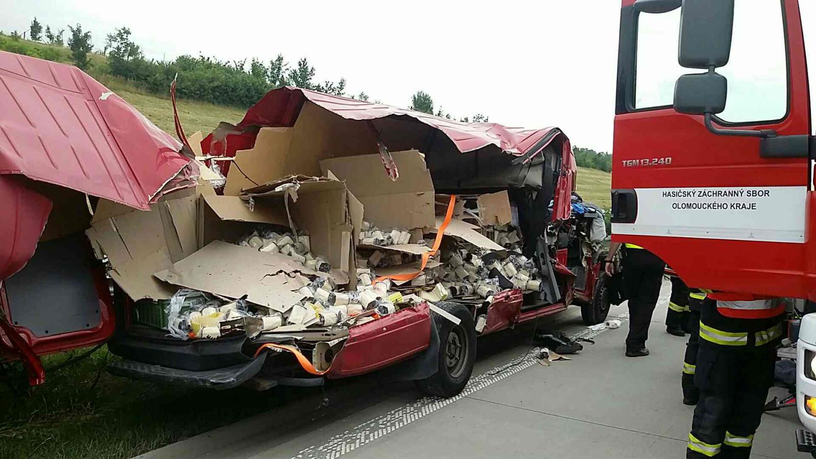 Na místo vyjeli profesionální hasiči z Hranic a z Lipníku nad Bečvou, kteří po příjezdu zjistili, že havarovala zdrav.pngdodávka a nákladní vozidlo. Uvnitř havarované dodávky byl zaklíněný řidič, kterého hasiči pomocí hydraulického vyprošťovacího zařízení vyprostili a předali do péče zdravotnické záchranné služby. Jednotky dále zajistily havarovaná vozidla proti vzniku požáru, pomohly s úklidem vozovky a spolupracovaly s Policií ČR.