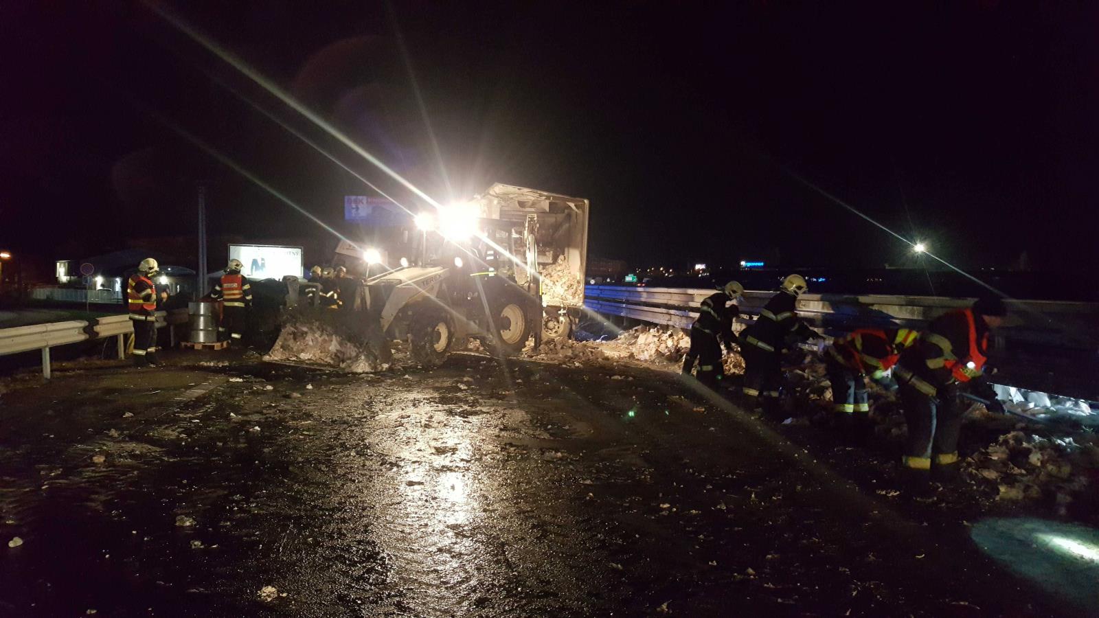 Hasiči následně zamezovali úniku ropných látek a pohonných hmot do kanalizace, přečerpávali neuniklé pohonné hmoty z poškozených nádrží nákladních vozidel, osvětlovali místo události a vypomáhali s překládkou nákladů. Překládka kvasnic byla velmi komplikovaná, částečně byl náklad naložen nakladačem, tam, kde se nakladač nedostal, pracovali hasiči ručně s lopatami.
