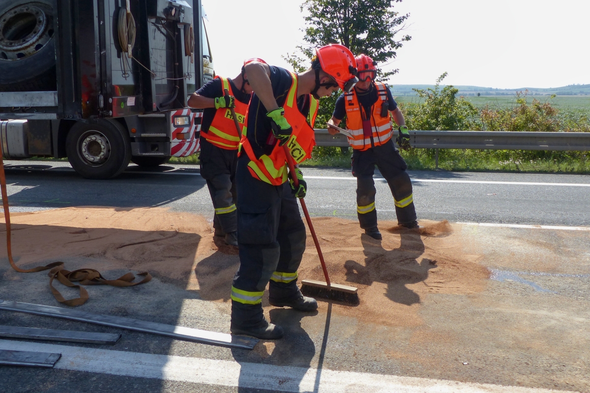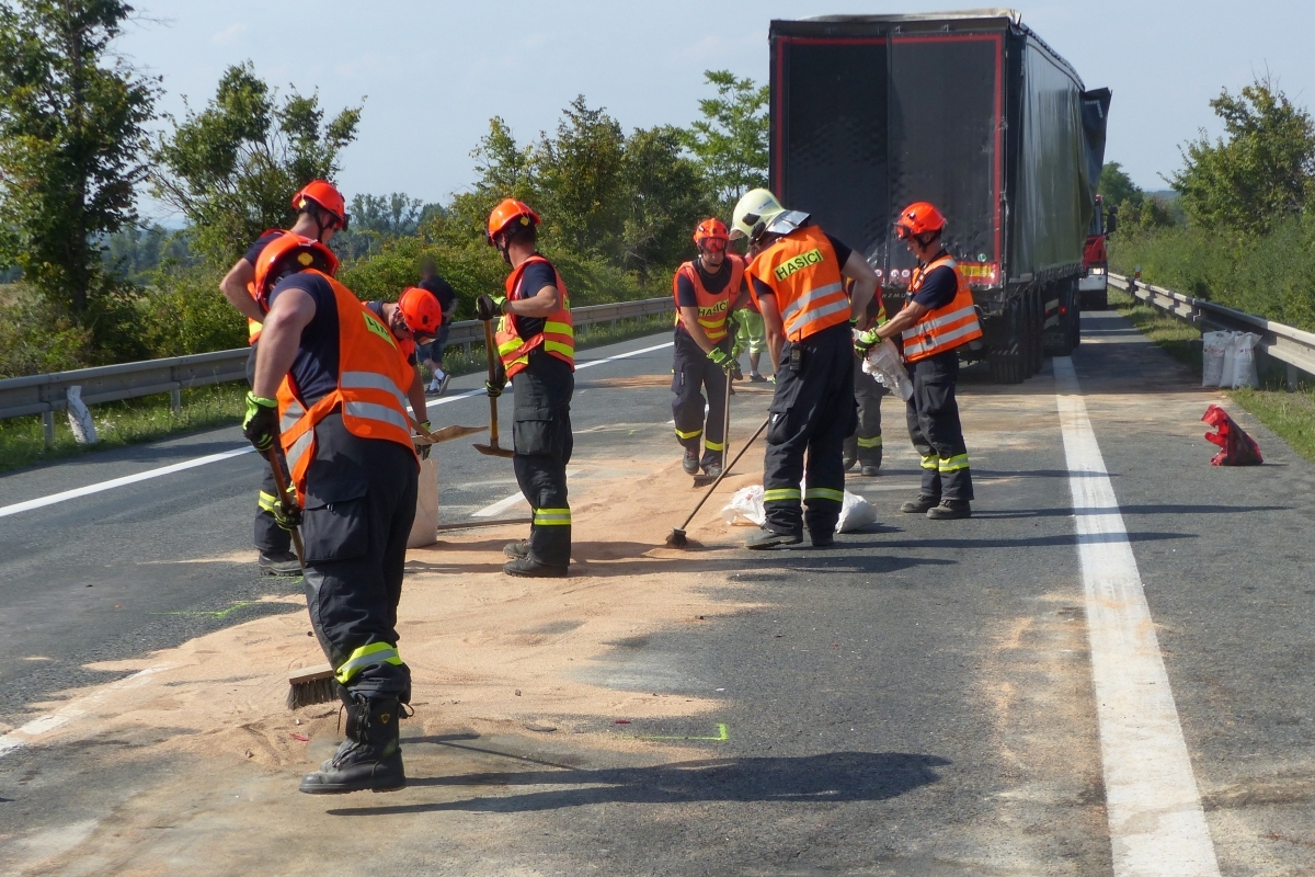 Hasiči zabezpečili vozidla proti případnému vzniku požáru a uniklé provozní kapaliny zasypali sorbentem. Po zadokumentování nehody Policií ČR a odtažení vozidel uklidili komunikaci. Odtažení kamionů zajistily specializované firmy.