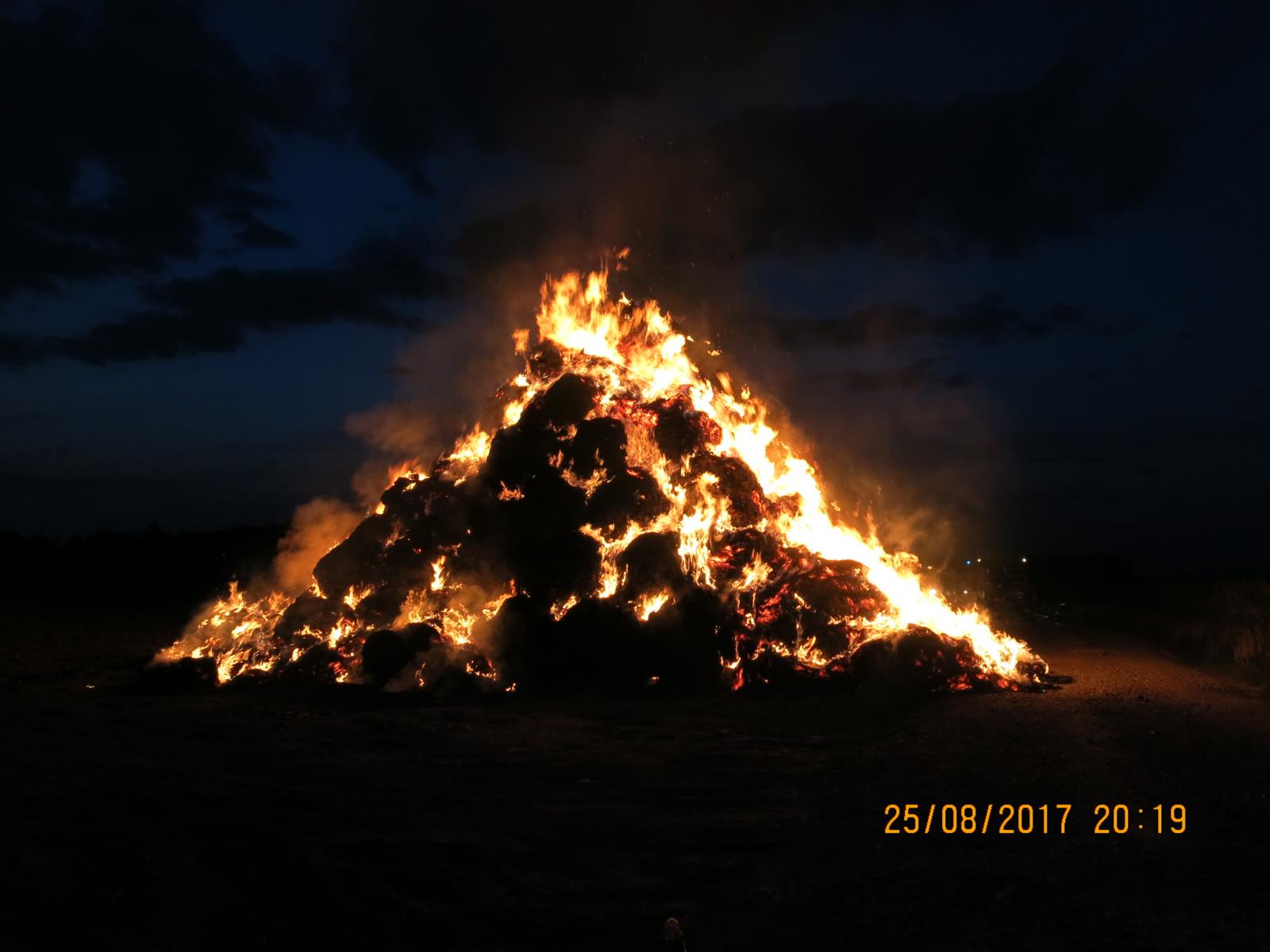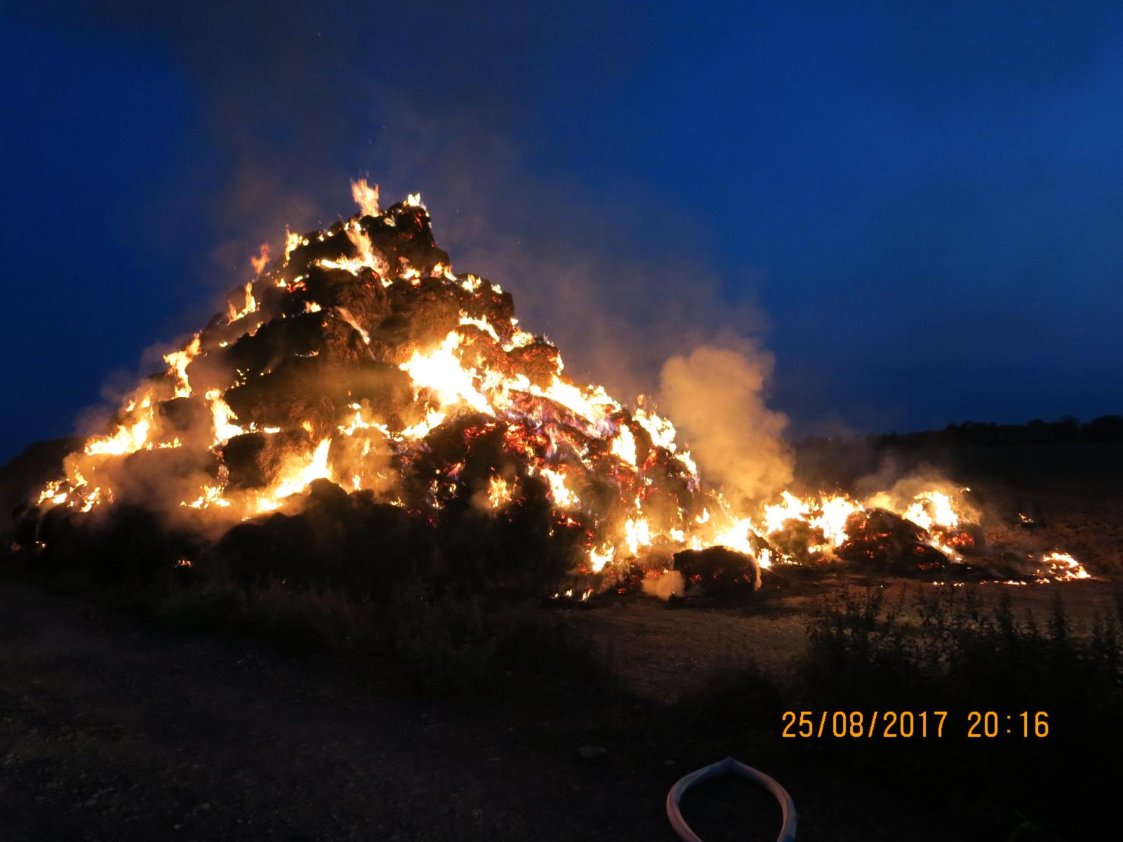 Krátce před půl osmou večerní předchozího dne, tj. v pátek 25.8.2016, vyslalo operační středisko k likvidaci požáru stohu za obcí...
