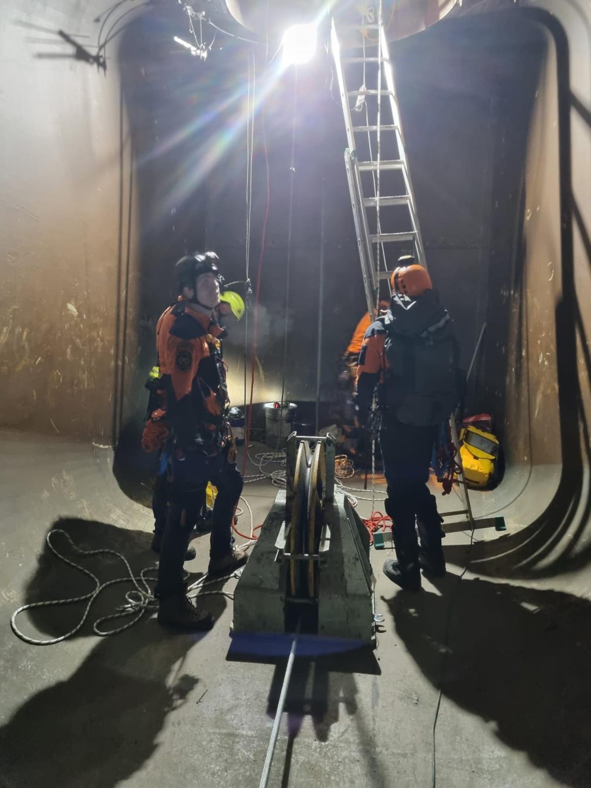 Tubus má průměr 3,6 metru a místy je téměř vertikální. Pracovníci uvízli asi 250 metrů od zlomu tubusu a nebyli schopni samostatně vystoupit. Podmínky byly extrémní – tma, vlhko, těsný prostor a riziko pádu těžkého vybavení.