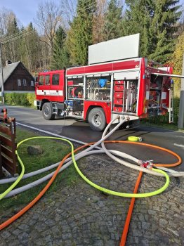 Požár vypukl v odpoleních hodinách v části Horní Lipová na Jesenicku. Na místo vyjely tři jednotky – profesionální hasiči z Jeseníku a dobrovolní hasiči z Lipové-lázně a Jeseníku.