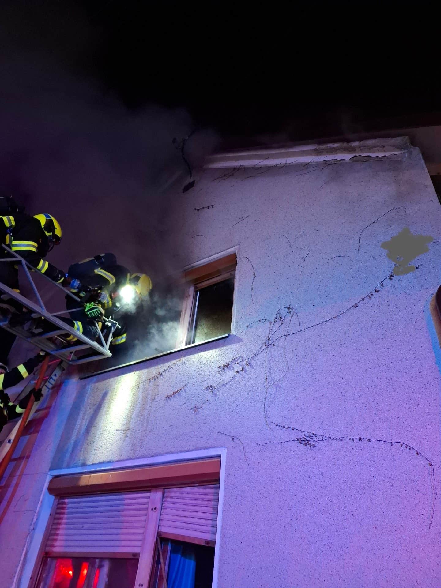 K požáru dvoupodlažního rodinného domu vyjelo v noci pět jednotek profesionálních i dobrovolných hasičů. Plameny zasáhly vnitřní prostory domu a hustý kouř se rychle šířil do všech pater. Při příjezdu hasičů se naštěstí uvnitř nikdo nenacházel, přesto byl jeden z obyvatel domu zraněn – nadýchal se zplodin hoření. Hasiči mu poskytli první pomoc a následně jej předali do péče zdravotnické záchranné služby.