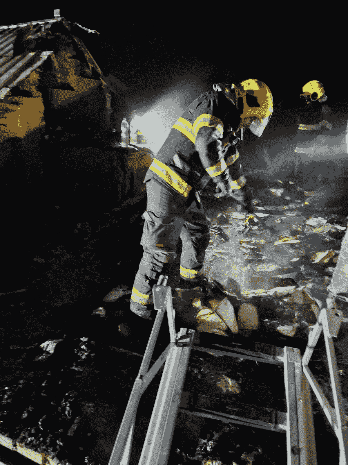 Požár byl nahlášen krátce po deváté hodině večer. Podle hasičů se plameny rychle rozšířily z přízemí do patra rodinného domu a zasáhly i přilehlou stodolu. Operační středisko vyslalo na místo sedm jednotek, které musely zasahovat s využitím výškové techniky a několika útočných proudů vody.