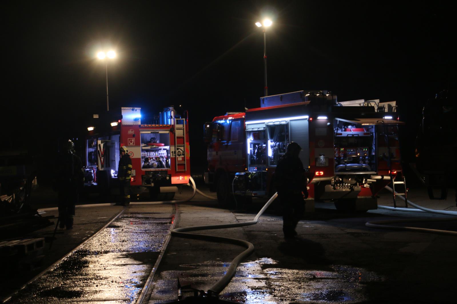 Z hořících prostor vynesli hasiči několik tlakových láhví a postupně likvidovali zahoření v celém objektu, došlo k poškození haly, skladovaného materiálu i technického, výrobního vybavení. Jednotkám se velmi rychle podařilo požár lokalizovat, okolní sousedící budovy nebyly nijak výrazně hořením ohroženy. Zhruba další dvě hodiny pokračovaly v postupném dohašování a dohledávání drobných skrytých ohnisek.