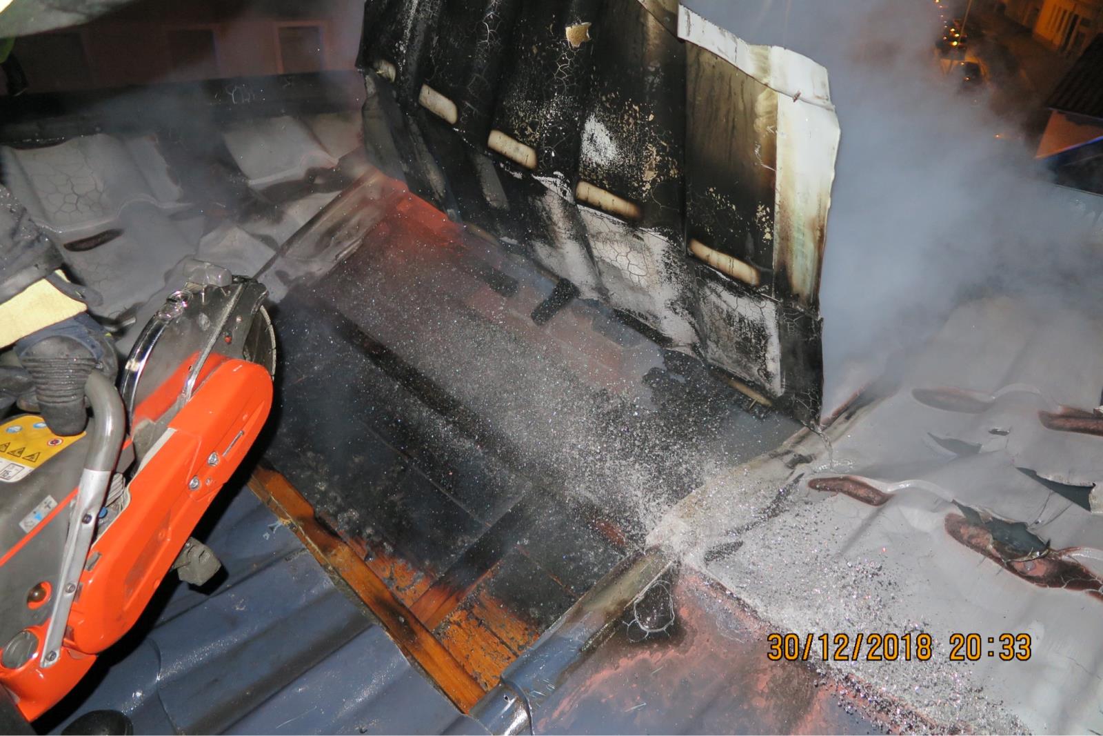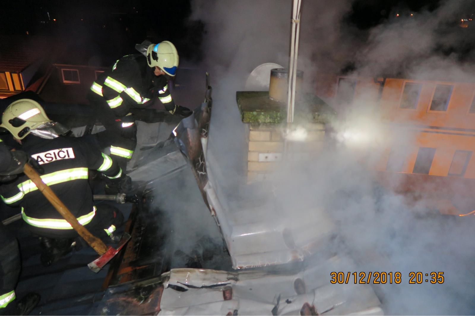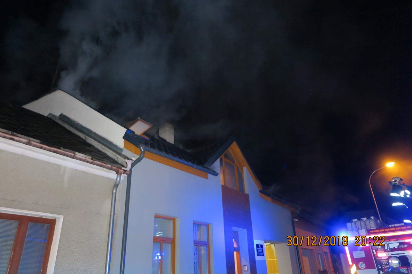 V době příjezdu se ze střechy valil hustý kouř, průzkumem hasiči nalezli rozšiřující se hoření již části střechy.