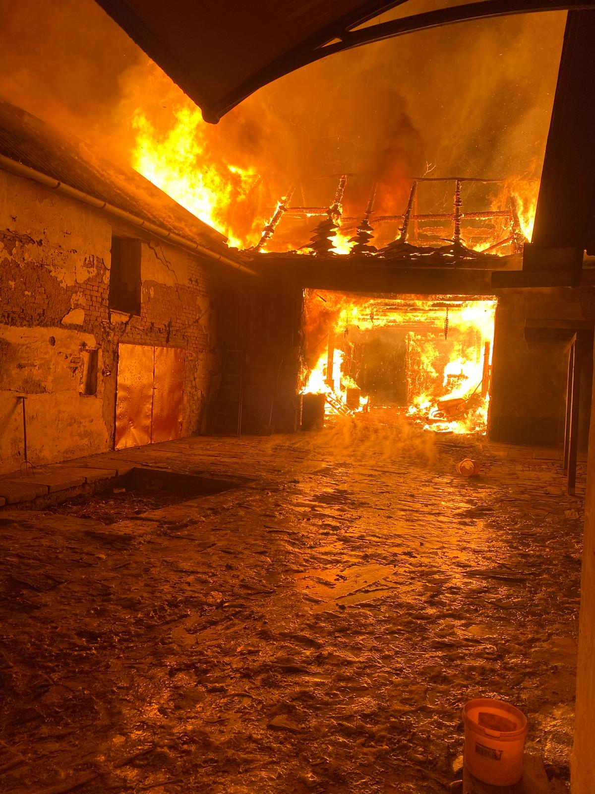 Požár se v důsledku uskladněné slámy šířil extrémně rychle. Oheň pohltil vybavení hospodářských budov, zničil stroje a postupně zasáhl i střechu rodinného domu včetně obytného podkroví. Vlivem silného mrazu se hasiči potýkali se zamrzající vodou a kluzkým terénem, což si vyžádalo maximální obezřetnost při pohybu a manipulaci s technikou.