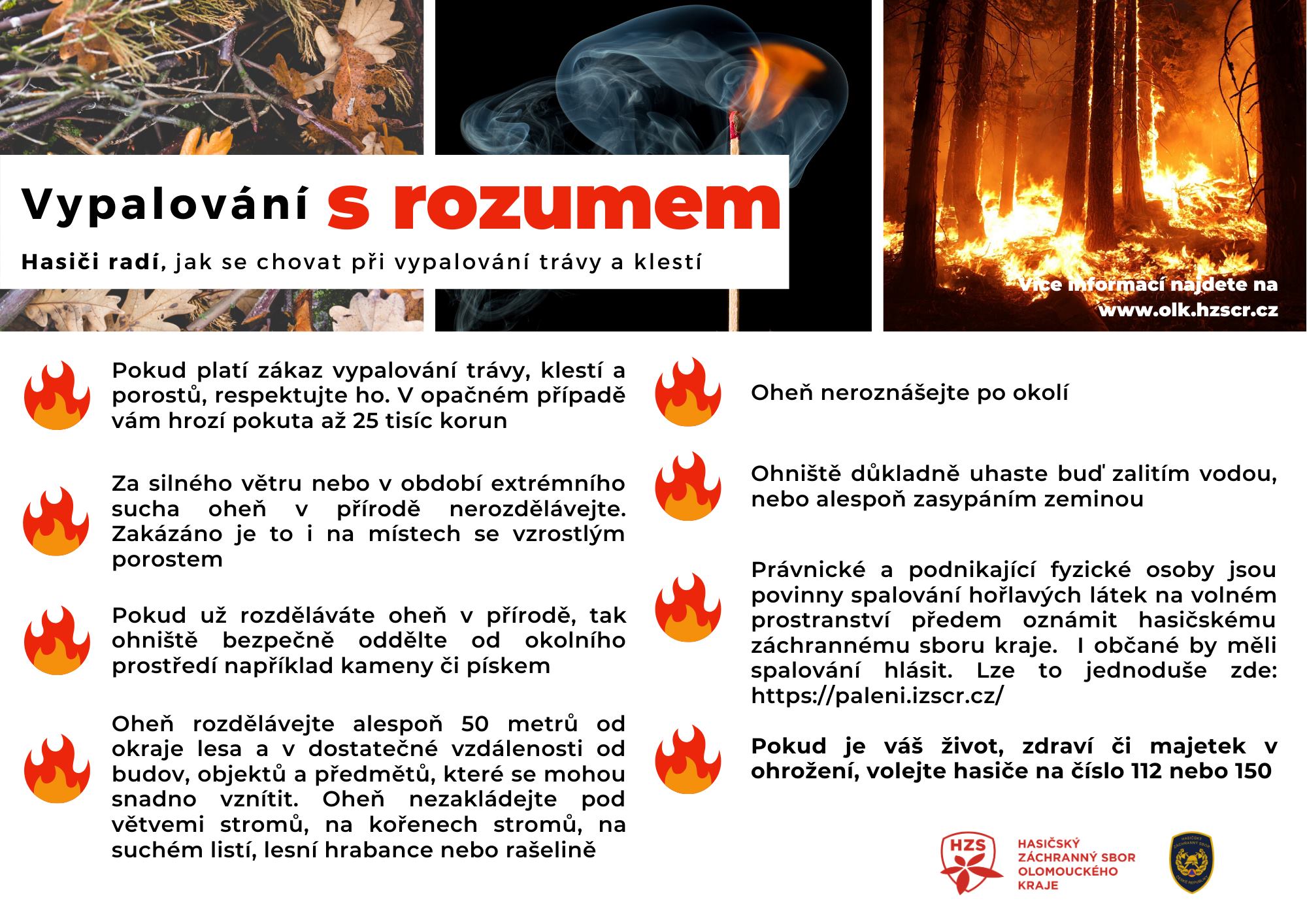 Doporučujeme také předem pálení nahlásit!