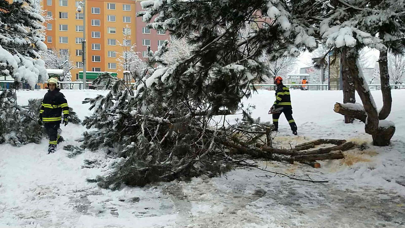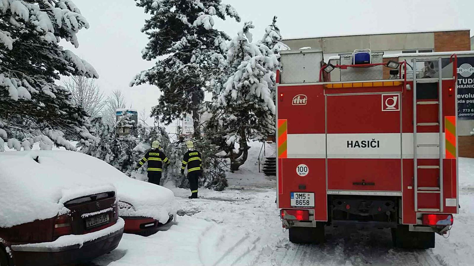 Také na stromech může mokrý těžký sníh způsobovat komplikace a zapříčinit jejich lámání. K jednomu takovému případu vyjížděli ve čtvrtek 2. února 2017 v 8:46 hodin hraničtí hasiči na třídu 1. máje v Hranicích. Strom obtěžkán mokrým sněhem se naklonil nad chodník a jeho popraskané větve ohrožovaly chodce. Hasiči strom ořezali a místo předali technickým službám.