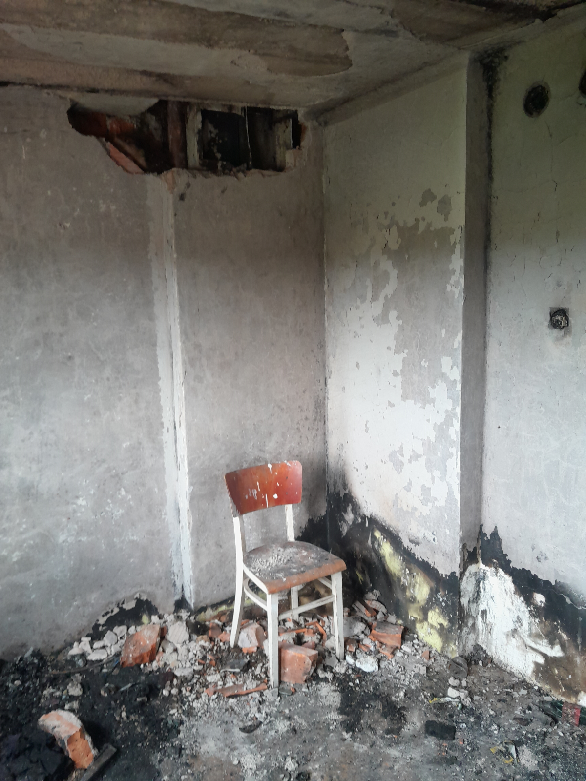 Byt s vybavením a nashromážděným materiálem jsme hasili 2C proudy. Mnoho odpadu jsme museli vynosit a hasit před budovou. Zasahovali jsme v dýchacích přístrojích, pro průzkum jsme využili výškovou techniku. Po likvidaci požáru jsme celou budovu odvětrali.