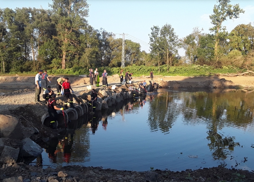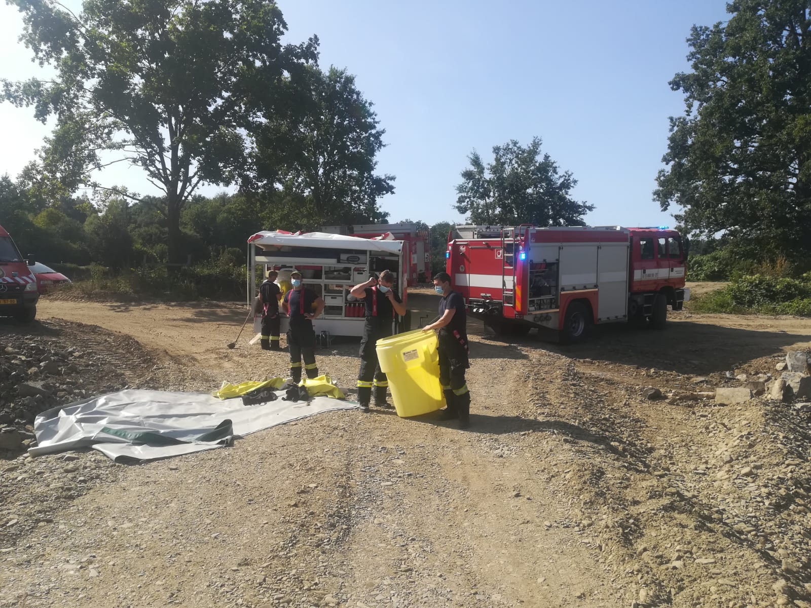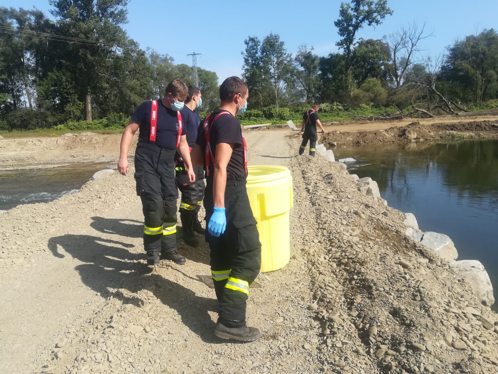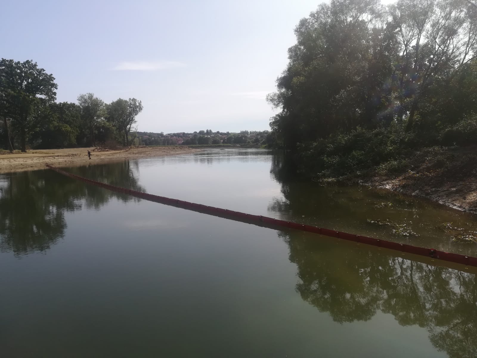 Už druhý den řeší profesionální hraničtí, lipničtí i přerovští hasiči únik neznámé látky do řeky Bečvy.