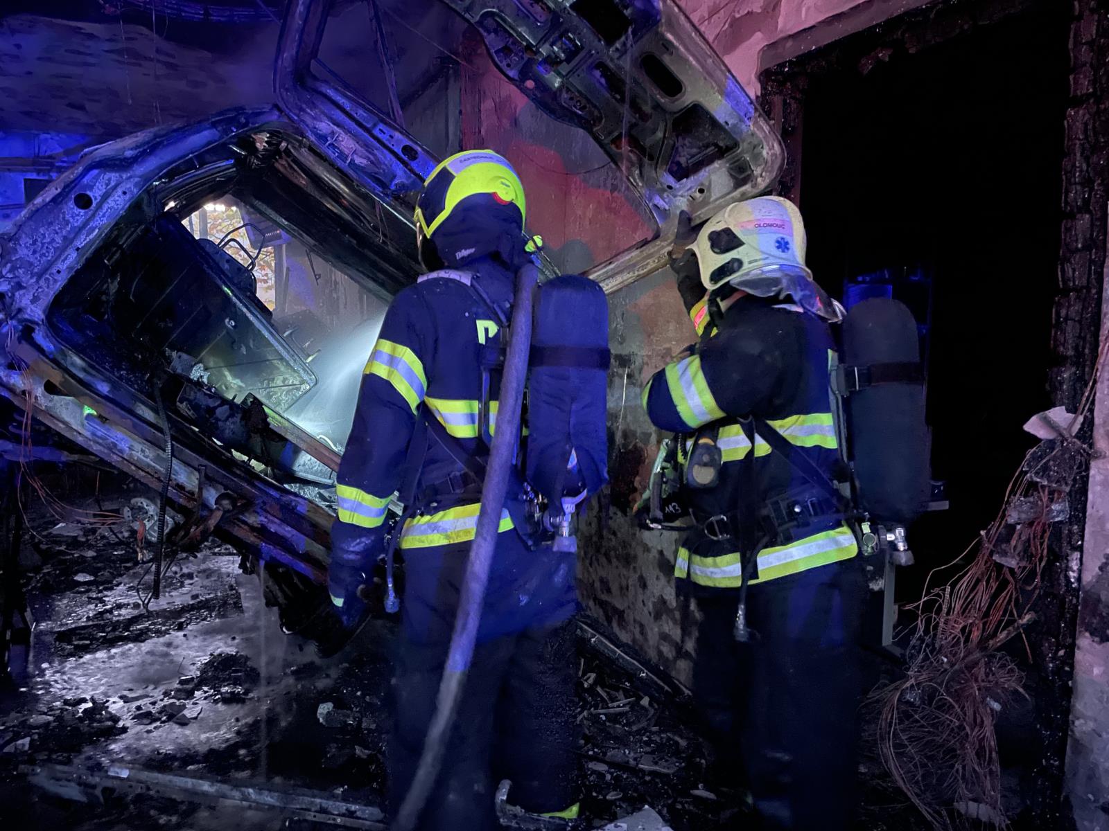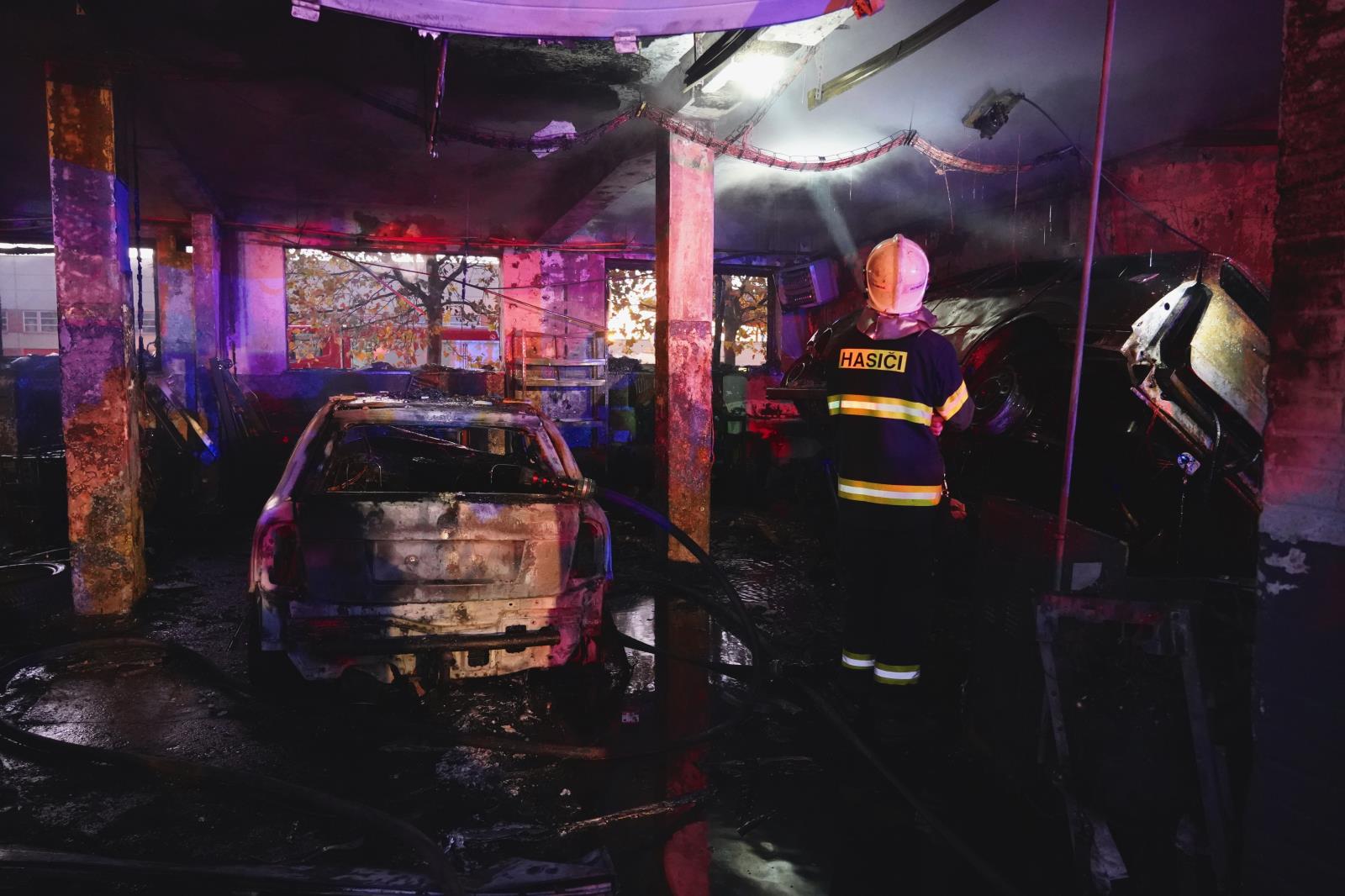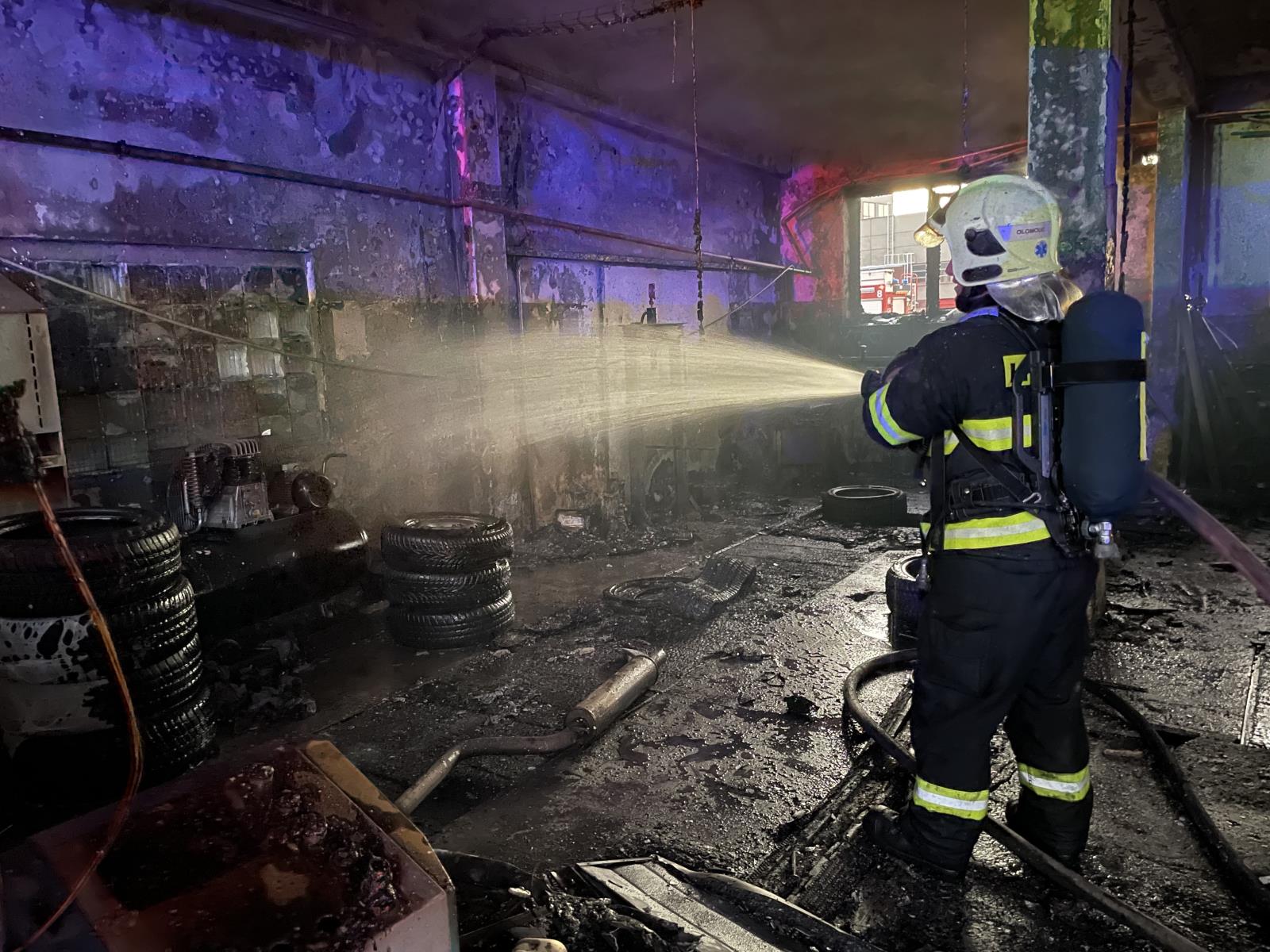 Požár autodílny v Olomouci Holici se zraněním