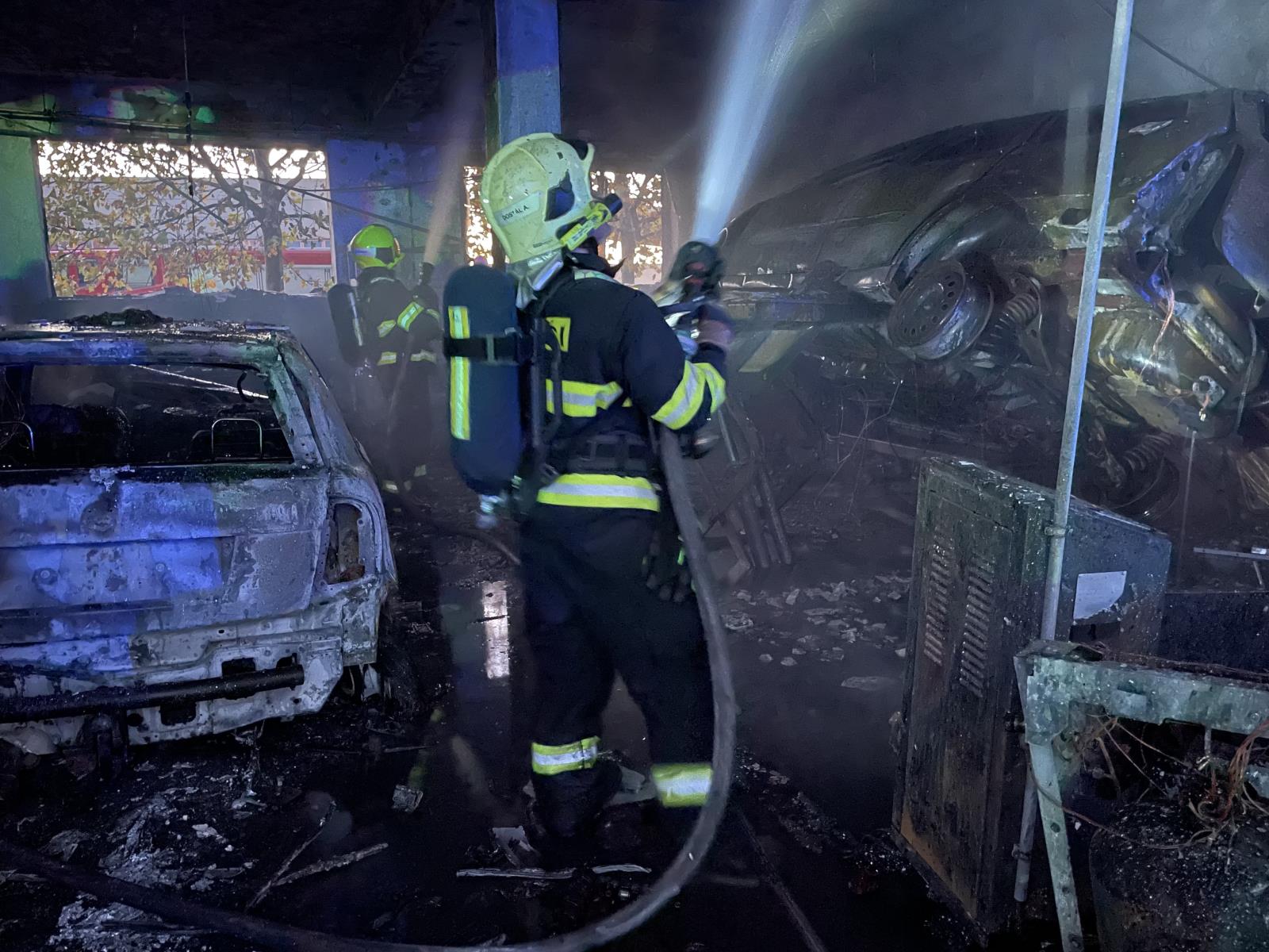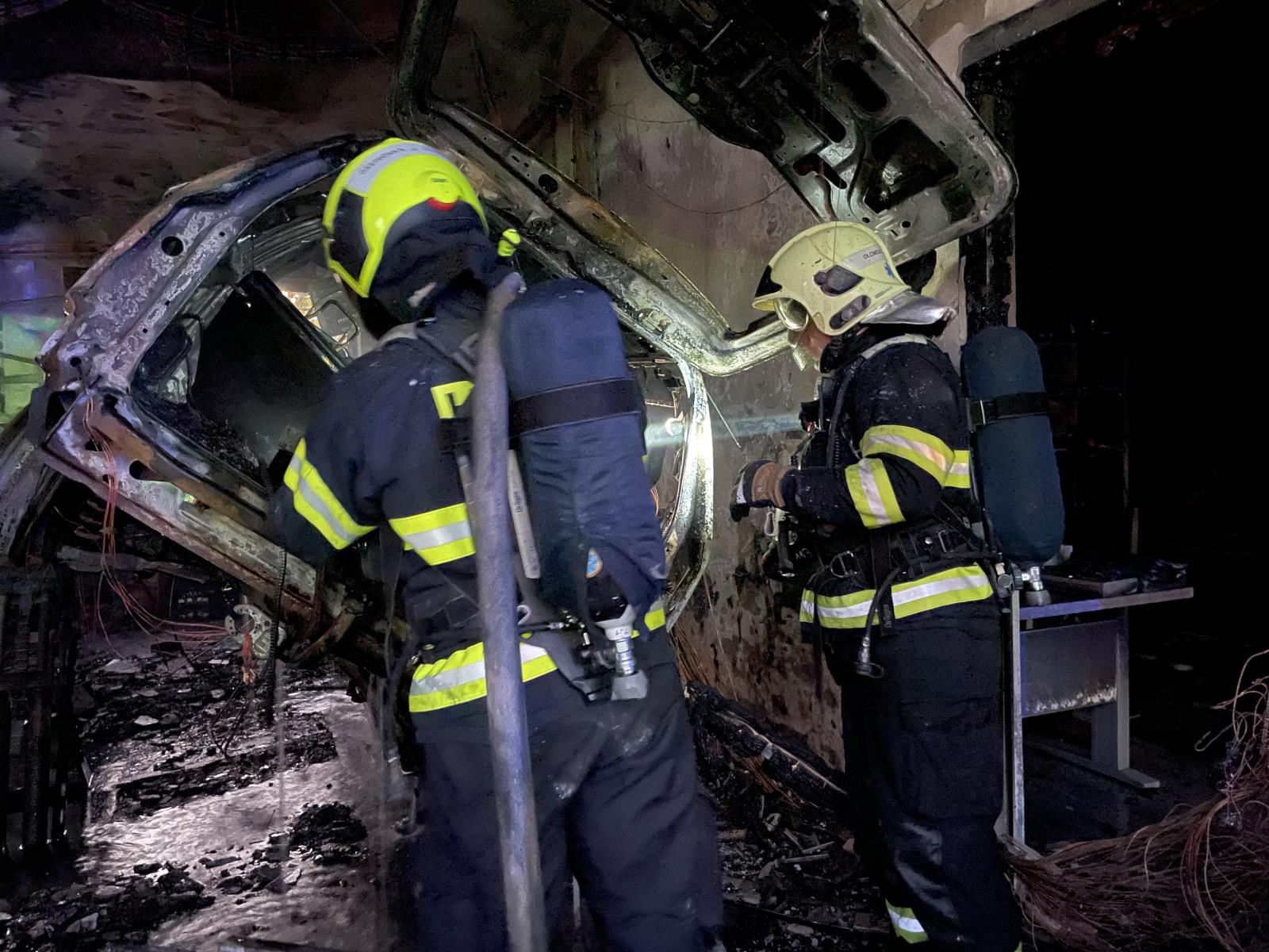 V zahořených prostorech došlo k poškození dvou osobních vozidel, vybavení a prakticky celé autodílny. V účinné lokalizaci byly využito hašení dvěma proudy „C“ a vysokotlaku, ze dvou možných přístupných částí. K ochlazení a dohledu z prostor hasiči vynesli několik tlakových láhví. Pomocí termokamer důkladným průzkumem bylo vyloučeno zahoření v přilehlých provozovnách, včetně přezkoumání půdních prostor. Při snaze zabránění rozšíření požáru se zranil jeden pracovník autodílny. Zdravotník z řad hasičů mu poskytnul prvotní ošetření do dojezdu posádky ZZS, jednalo se o popáleninu na horních končetinách. Během zásahu mimo jiné jednotky řešily úniku oleje do sběrných nádob a také bezpečnostní opatření a zajištění poškozeného rozvodu elektrické energie. Co stojí za přesnou příčinou vzniku požáru aktuálně došetřujeme ve spolupráci s Policii ČR, s největší pravděpodobností se bude jednat o nedbalostní činnost. Výše škody majitel předběžně vyčíslil v částce 1,5 mil korun.