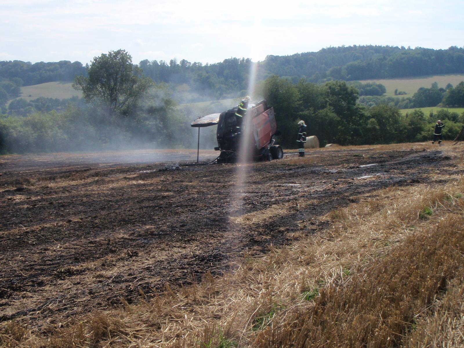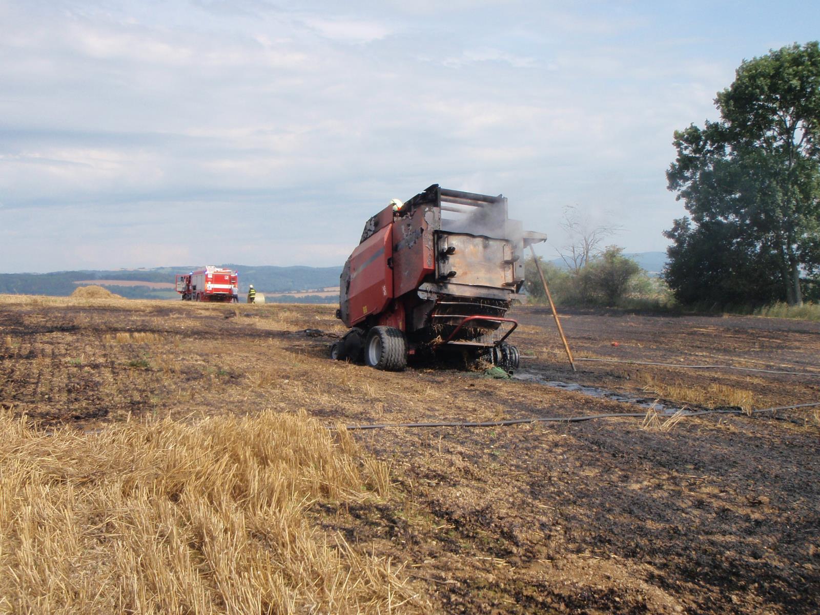 Požár balíkovače slámy na Šumpersku.