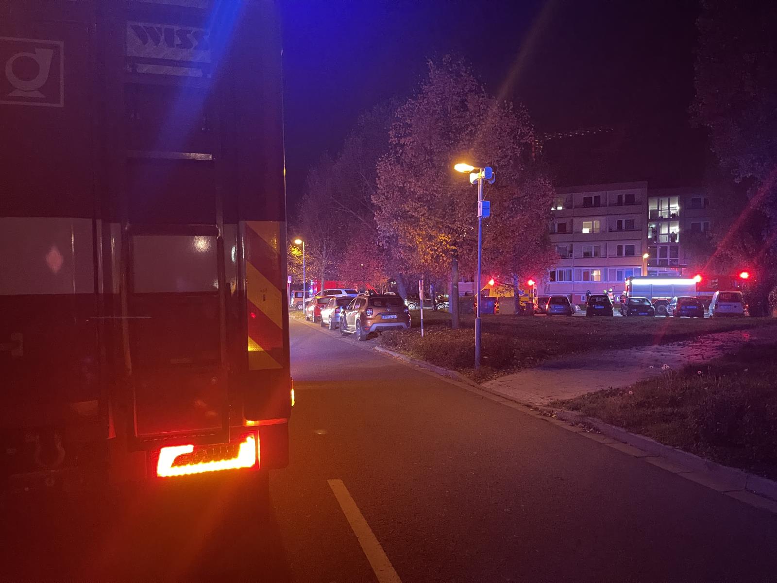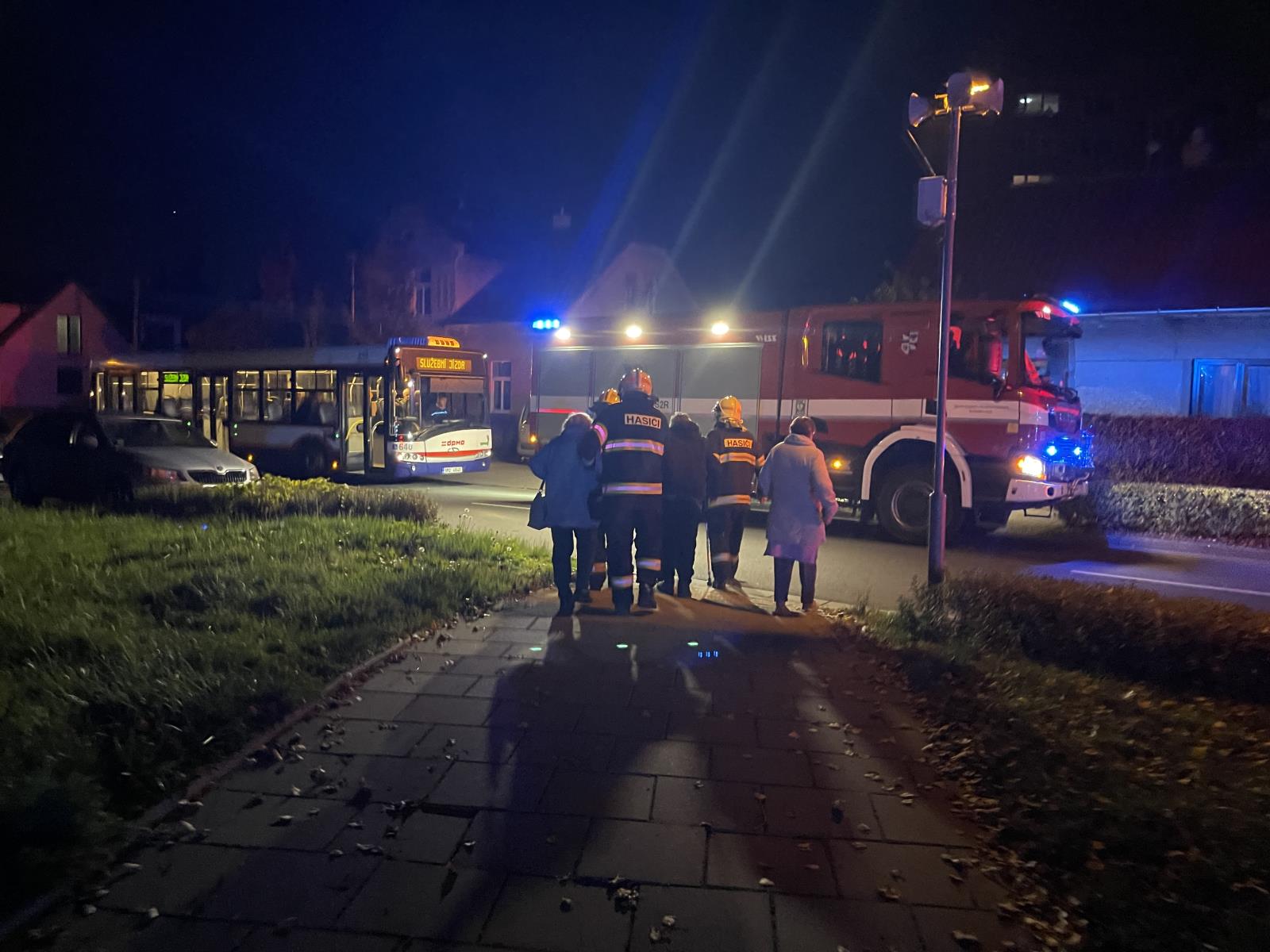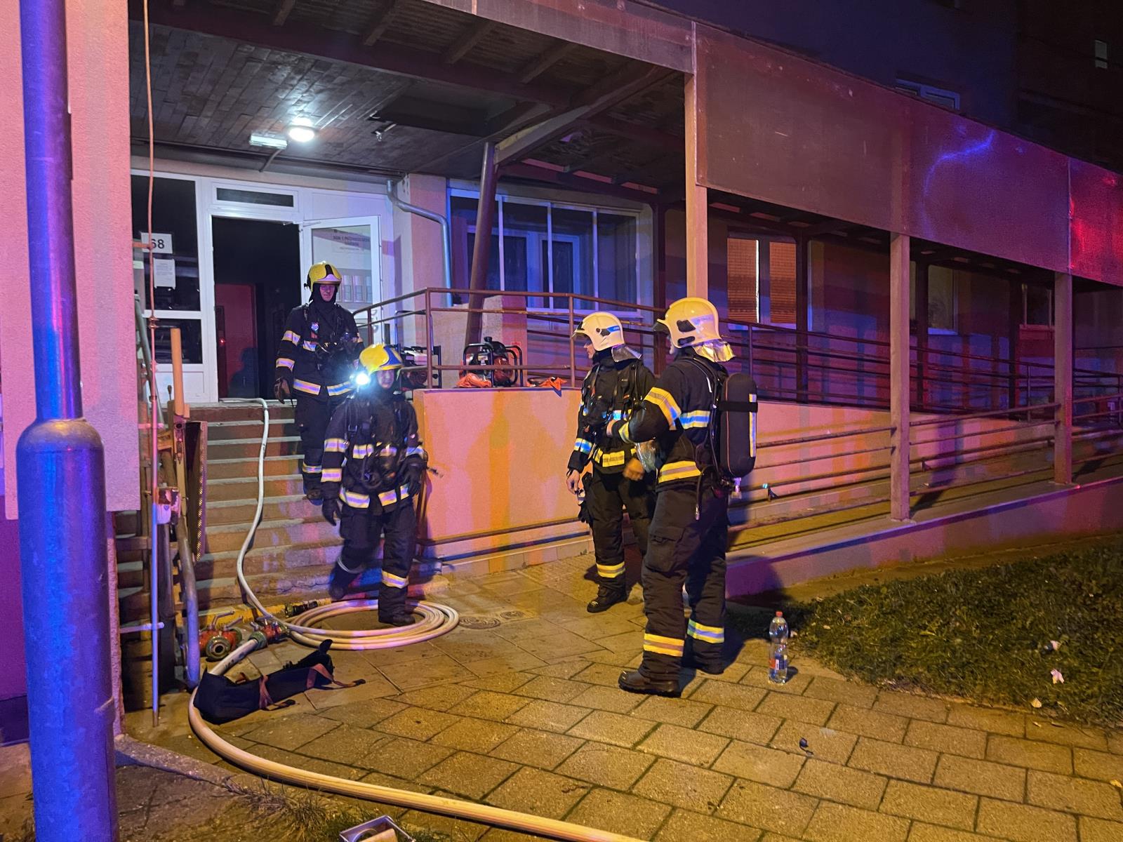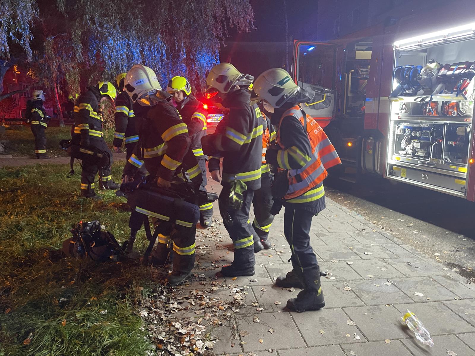 Došlo k velmi silnému zakouření jedovatými zplodinami hoření jednoho vchodu třípodlažní budovy. Při zásahu hasiči vyhledali v jednotlivých zasažených bytech 20 seniorů, ve vyváděcích maskách je z objektu vyvedli do bezpečí.
