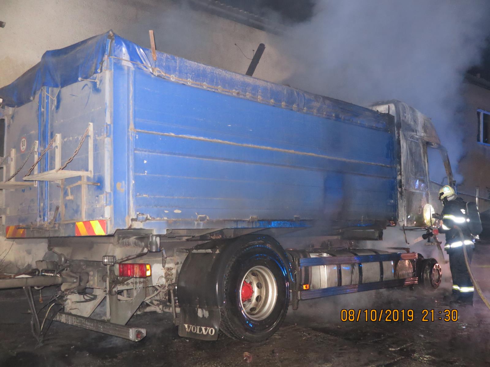Operační středisko bylo o situaci prostřednictvím tísňového hovoru informováno krátce po jednadvacáté hodině večerní s popisem pozorovatelného kouře a plamenů v areálu. K místu po chvíli dorazila místní jednotka dobrovolných hasičů Kostelec na Hané, ta průzkumem zjistila zdroj hoření v podobě plameny zasažené kabiny nákladního vozidla. Intenzitou hoření pak druhořadě došlo k poškození oken budovy v těsné blízkosti. Pomocí dvou vodních proudů požár po chvilce lokalizovali.