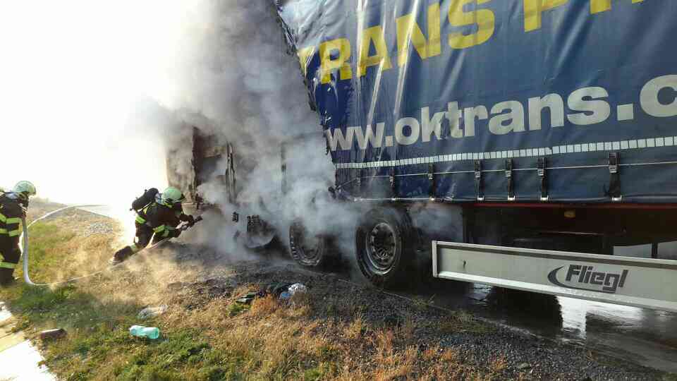 V pátek 19. října 2018 vyjeli v 15:44 hodin profesionální hasiči z Olomouce a dobrovolní hasiči z Velké Bystřice k oznámenému požáru návěsu nákladního vozidla na dálnici D35 na 278,5. km ve směru na Ostravu.