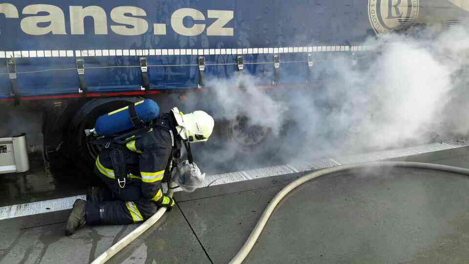 Hasiči po příjezdu zjistili, že požárem je zasažena podlaha návěsu kamionu a pneumatiky. Kamion převážel obklady (nehořlavý materiál), proto se plameny podařilo hasičům dostat pod kontrolu za několik minut po příjezdu na místo události. Doprava na dálnici byla po dobu likvidace požáru zastavena.