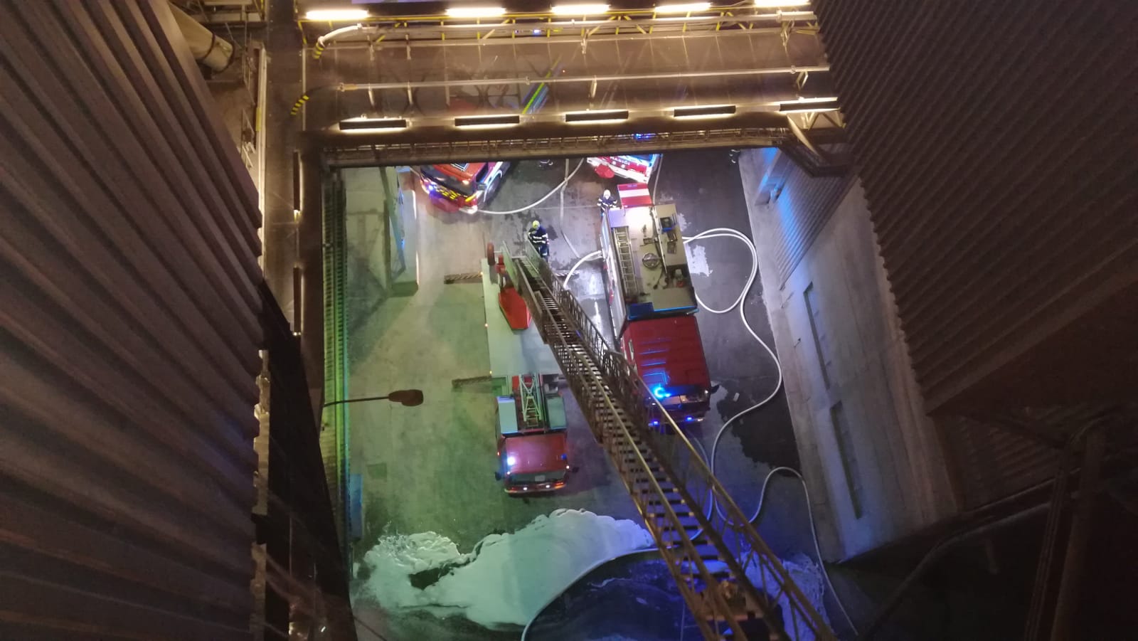 V místě došlo k zahoření na technologii pásového dopravníku ve výšce zhruba 25 metrů. Jednalo se o velmi fyzicky náročný zásah, po celou dobu vedený v dýchací technice. V kombinaci nasazení pěnového hasiva a zajištěním přístupnosti pomocí automobilové plošiny se zhruba po půlhodině podařilo zamezit dalšímu rozšiřování. Po útlumu plamenného hoření pokračovalo další několika hodinové ochlazování a dohašování. Po celou dobu zásahu byl prováděn dohled pomocí termokamery.