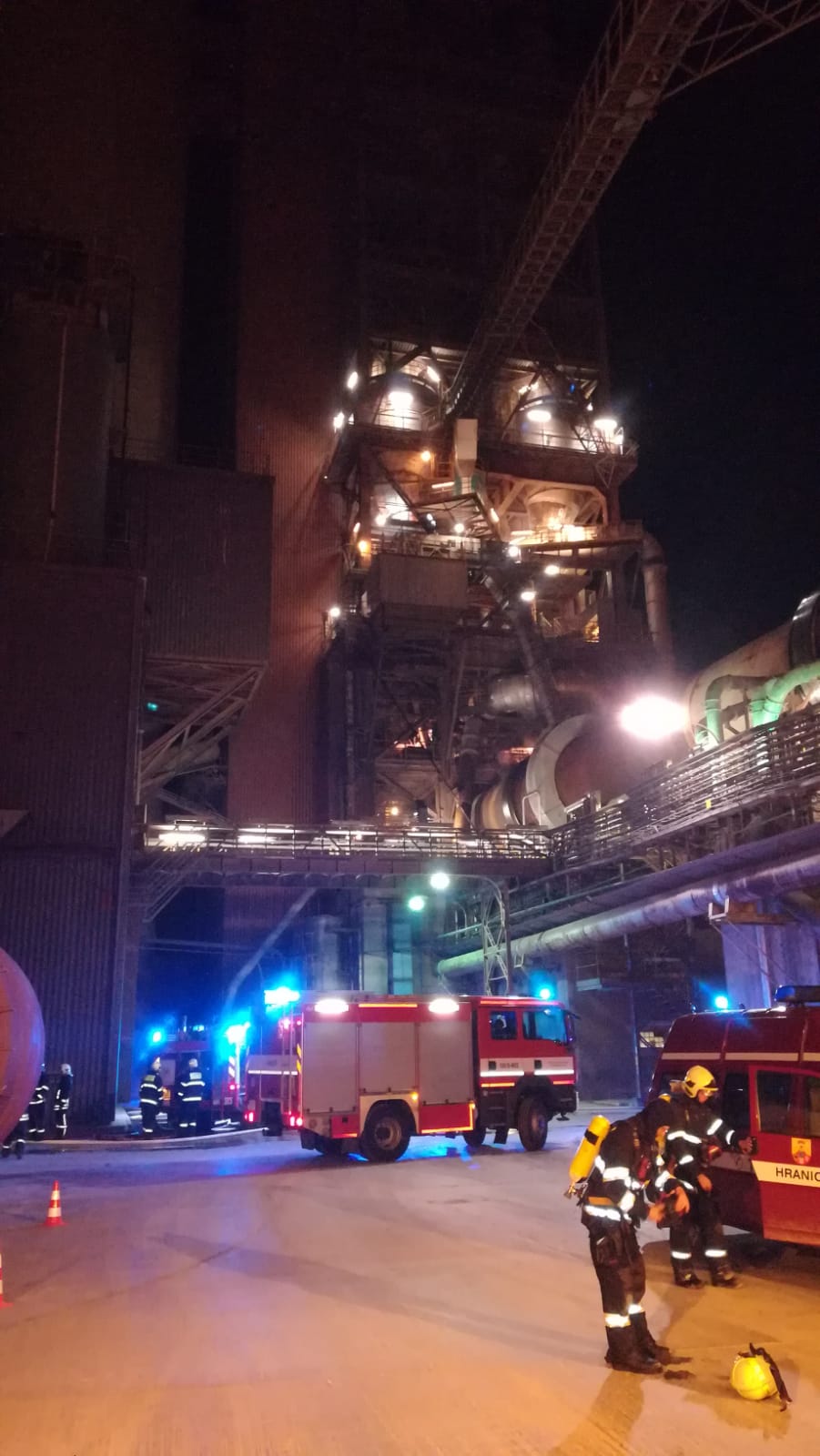 Krátce před půlnocí pondělí 8.4.2019 přijalo centrum tísňového volání linky 112 prvotní informaci o požáru pásové technologie v průmyslovém areálu na ulici Bělotínská v Hranicích. S doplňujícím upřesněním zahoření ve třetím patře a to nejen technologie, ale převážně drcených plastů, gumy a dalšího hořlavého materiálu.