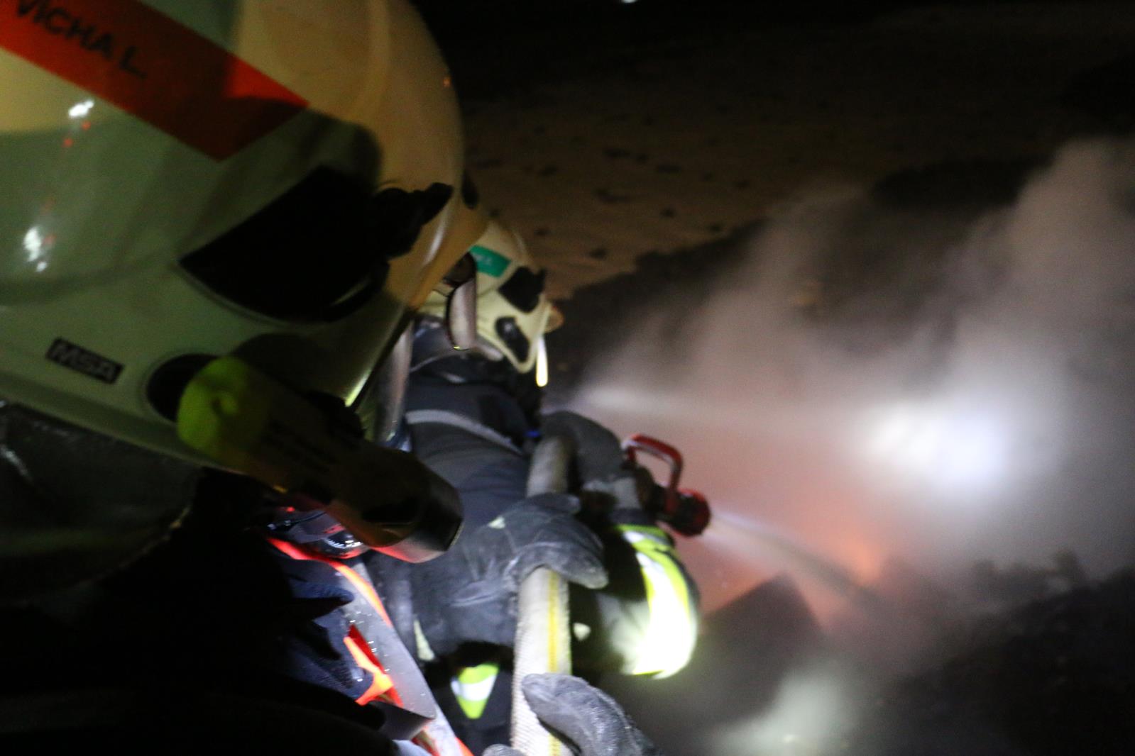 Hasiči musí zasahovat v dýchací technice a jsou častěji prostřídáváni. Dostatečné zásobování velkým množstvím budoucí spotřebované vody hasiči vyřešili z nedaleké hydrantové vodovodní sítě. V počátku zásahu jednotky využily pomoc nakladače, ten zajistil prvotní povrchové rozhrnutí. V tuto chvíli pomocí bagru řeší hasiči přípravu s navazující injektáží na několika místech, vše z důvodu rozlivu do skrytých míst hoření v nitru skládky