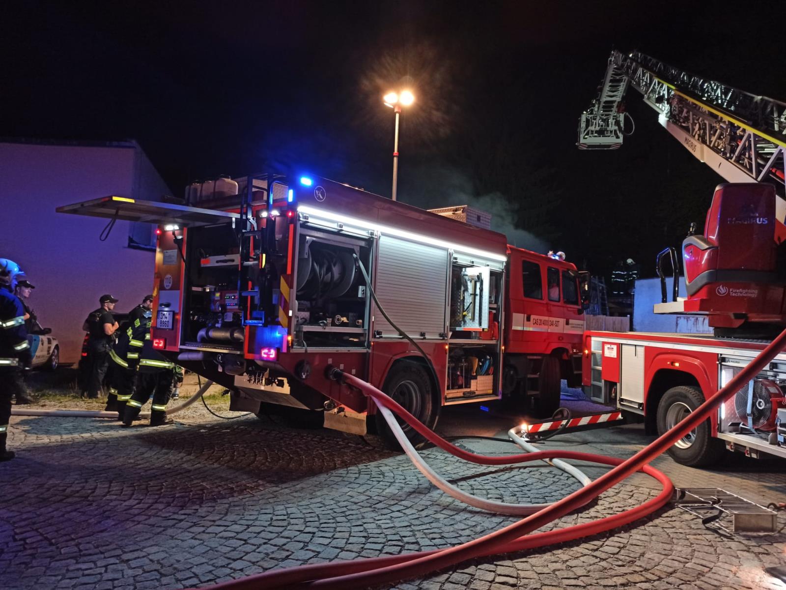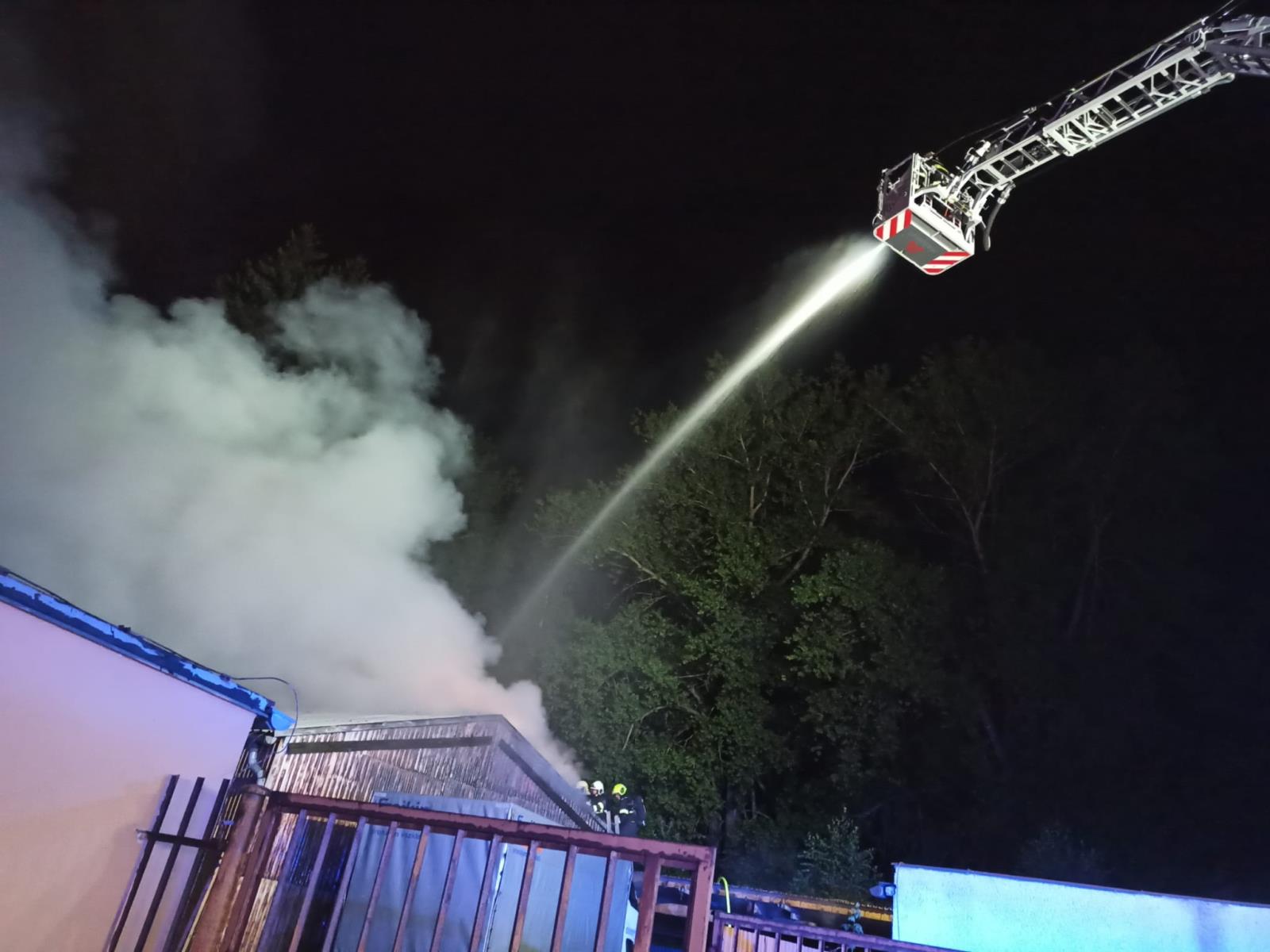 Video zde: Pozar skladovacích hal v Jeseníku 9.8.2021