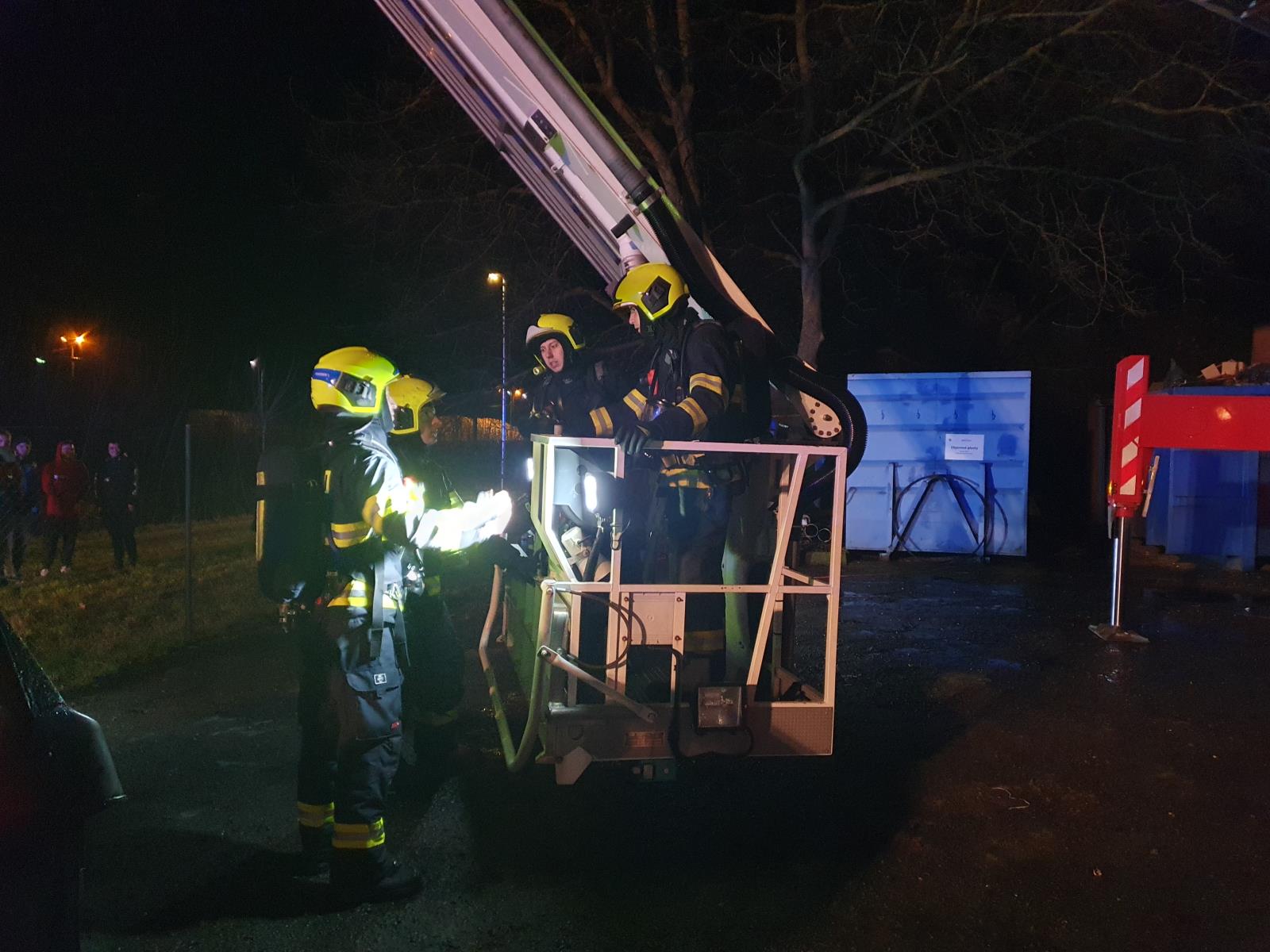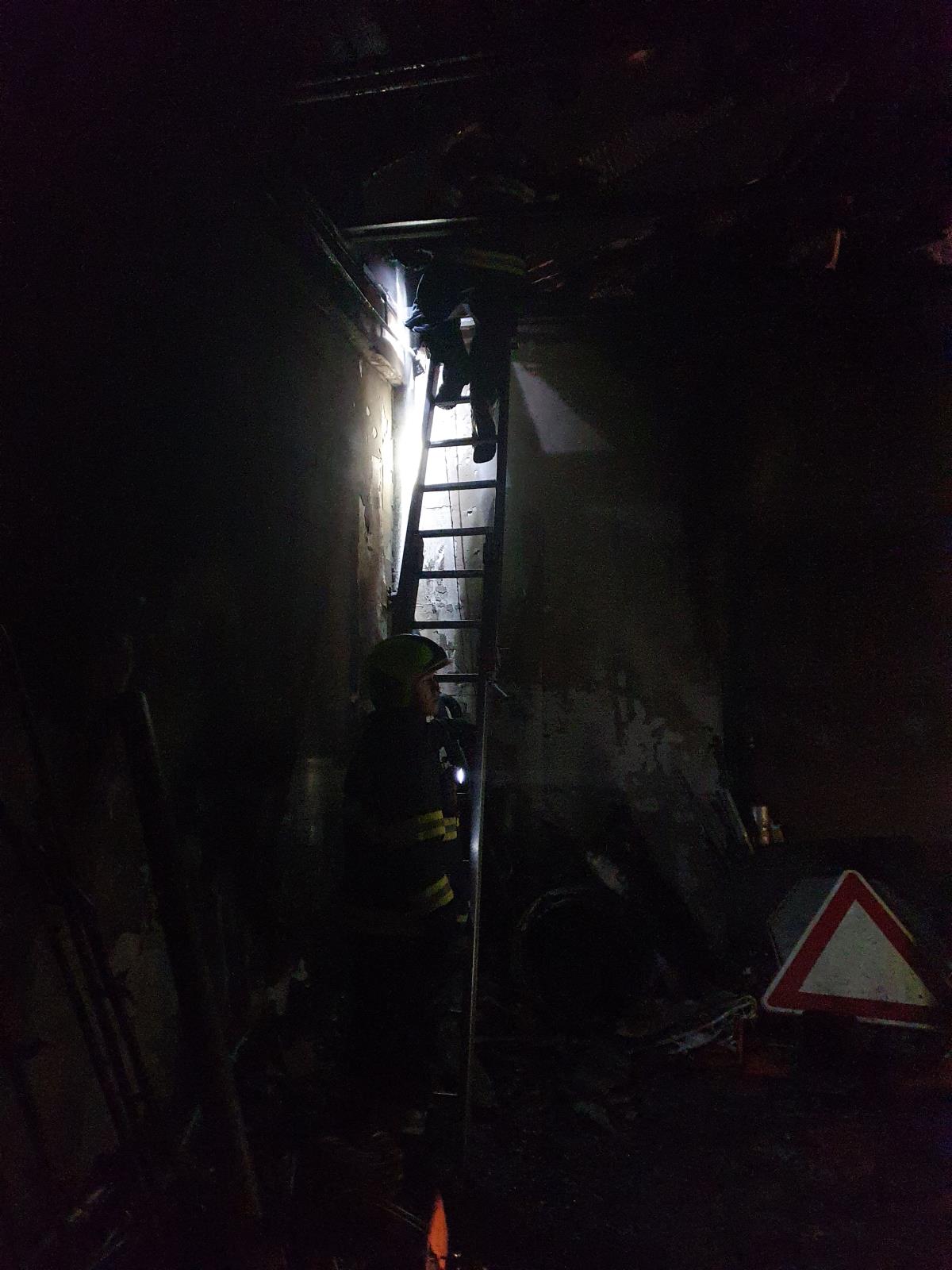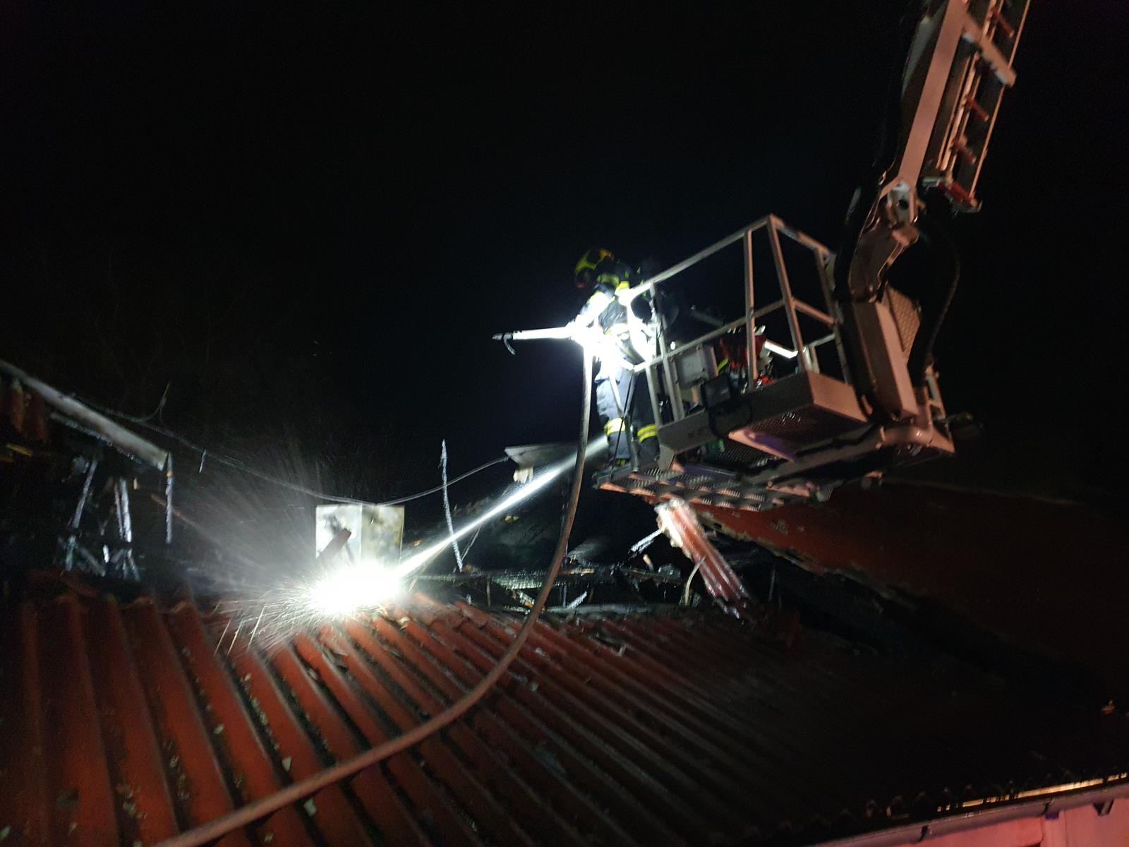 Následně byla nasazena výšková technika k dohašování skrytých ohnisek a rozebírání střešní konstrukce. Hasiči vynesli také různý materiál a vybavení. Ke kontrole objektu jsme využili termokameru.