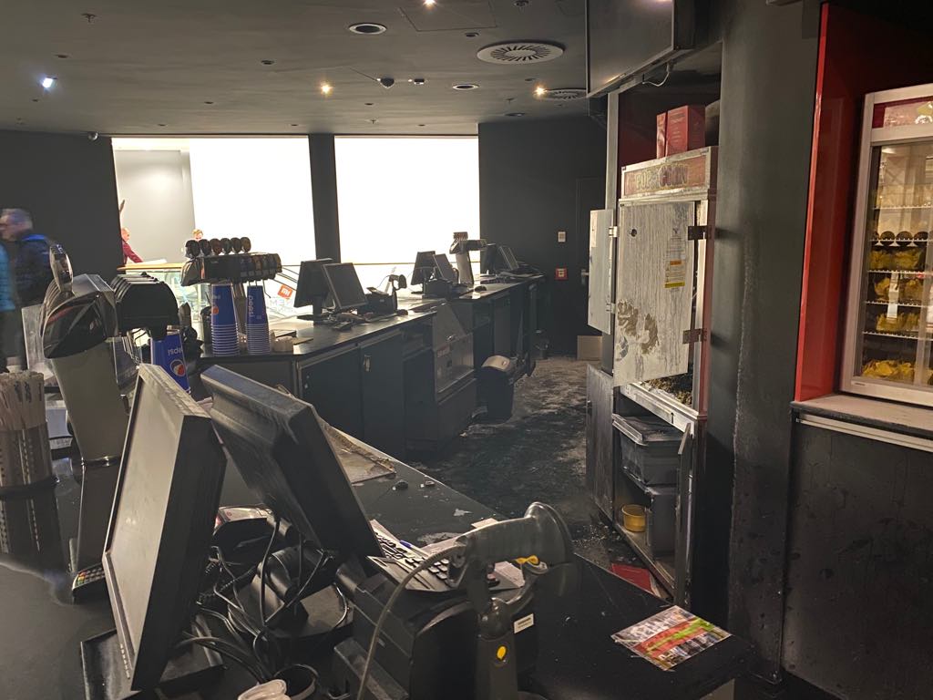 Před příjezdem zasahujících jednotek proběhla samostatná evakuace v rámci postupů v celém obchodním centru. Hasiči návazně do bezpečí dostali ze zakouřených prostor další osoby. Došlo k zahoření v prostorech u pokladen zmiňovaného kinocentra. Ještě před našim příjezdem požár hasili zúčastněni pomocí ručních hasících přístrojů, svou roli zde sehrála i aktivace a funkčnost automatického hasícího systému.