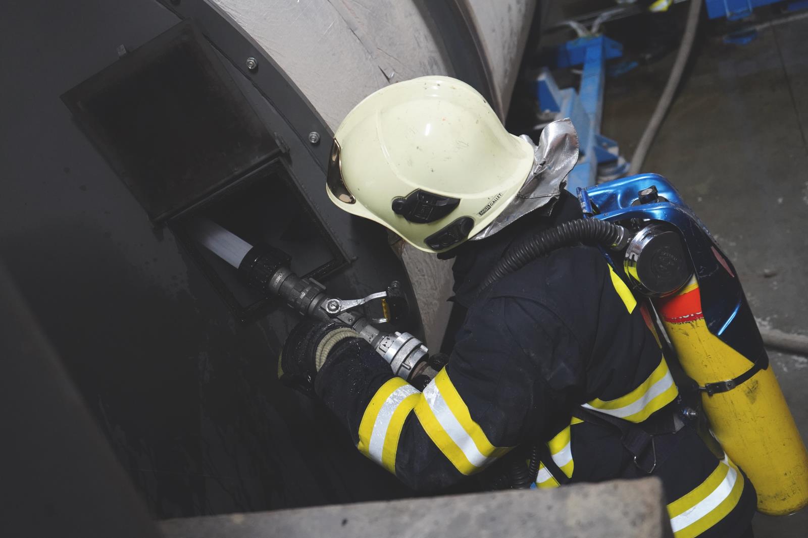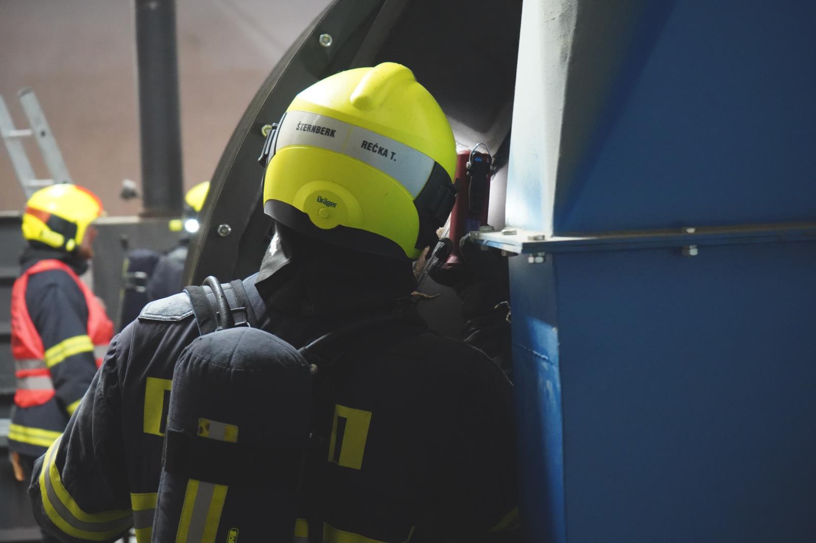 Požár v zásobníku sušičky pilin v Bělkovicích-Lašťanech.