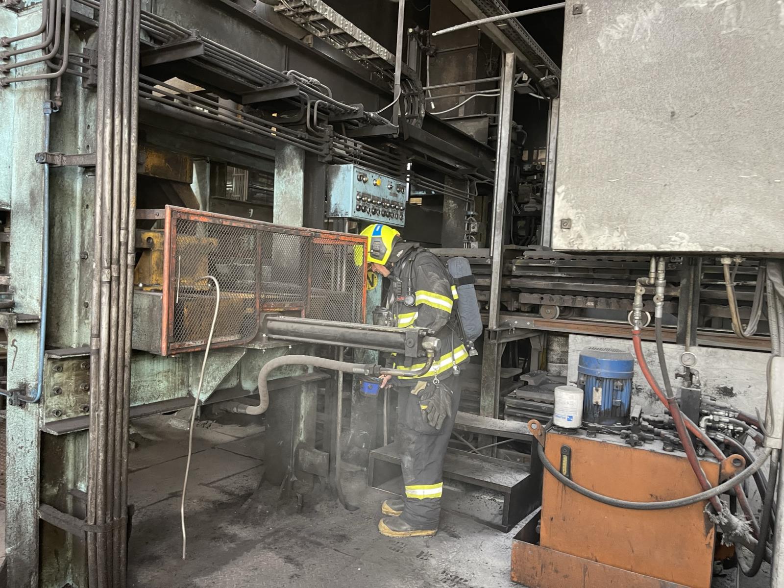 Na místě hasily v rozlehlé slévárenské hale čtyři jednotky. Kvůli silnému zakouření a prašnému prostředí byly využity dýchací přístroje.