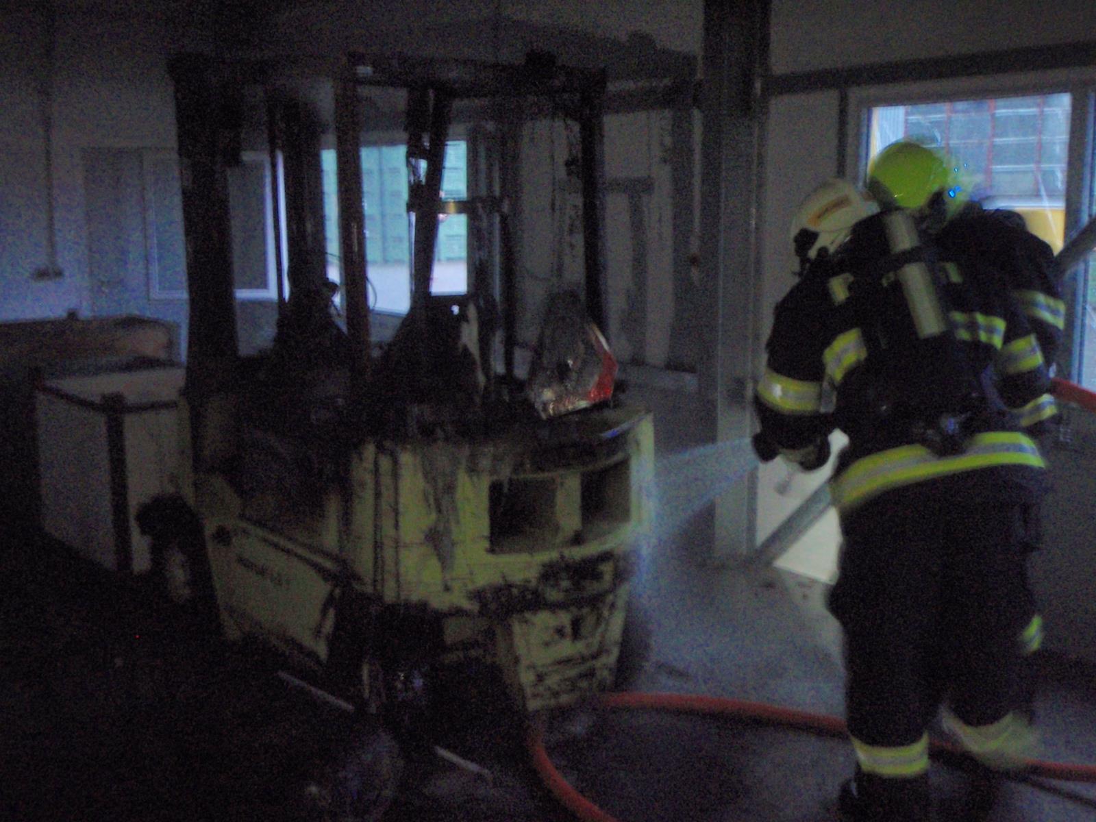 Požár vysokozdvižného vozíku v hale způsobil statisícové škody.