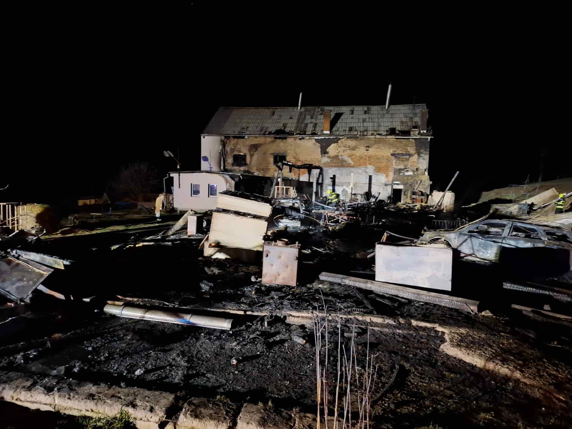 Noční požár v zemědělském areálu si vyžádal nasazení několika jednotek hasičů. Oheň zasáhl hospodářské objekty i část obytné budovy a způsobil značné škody.