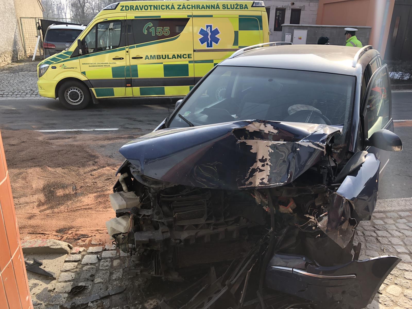 Při nárazu osobního vozidla do rodinného domku na Olomoucku se zranily tři osoby.