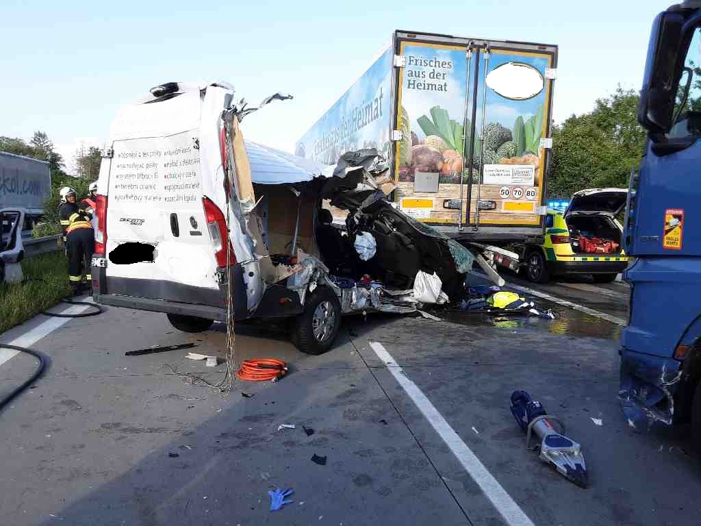 U vážné dopravní nehody u Přáslavic na D35, kde havarovala dodávka a 2 nákladní vozidla, zasahovali v úterý po 18. hodině dvě jednotky profesionálních a dobrovolných hasičů.