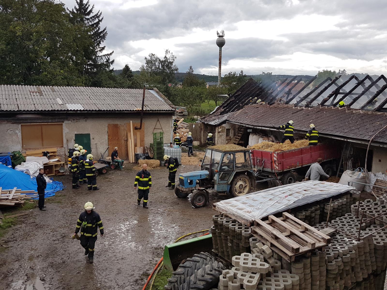 Nyní probíhají na místě dohašovací práce, hasiči průběžně objekt kontrolují termokamerou a hledají skrytá ohniska hoření. Musejí také vyskladnit mnoho materiálu, který byl v budově uložen.