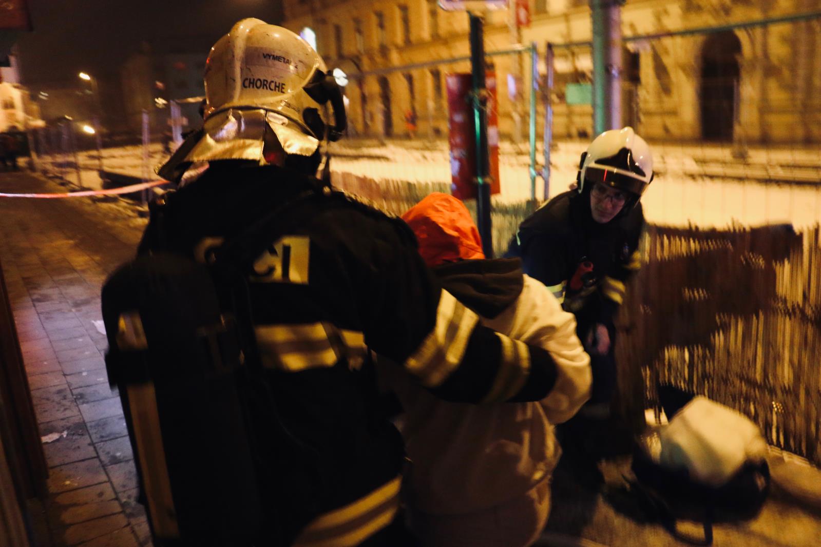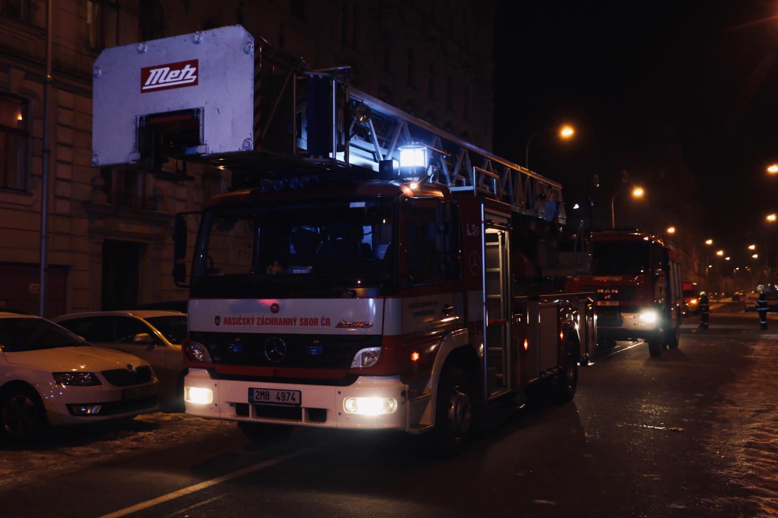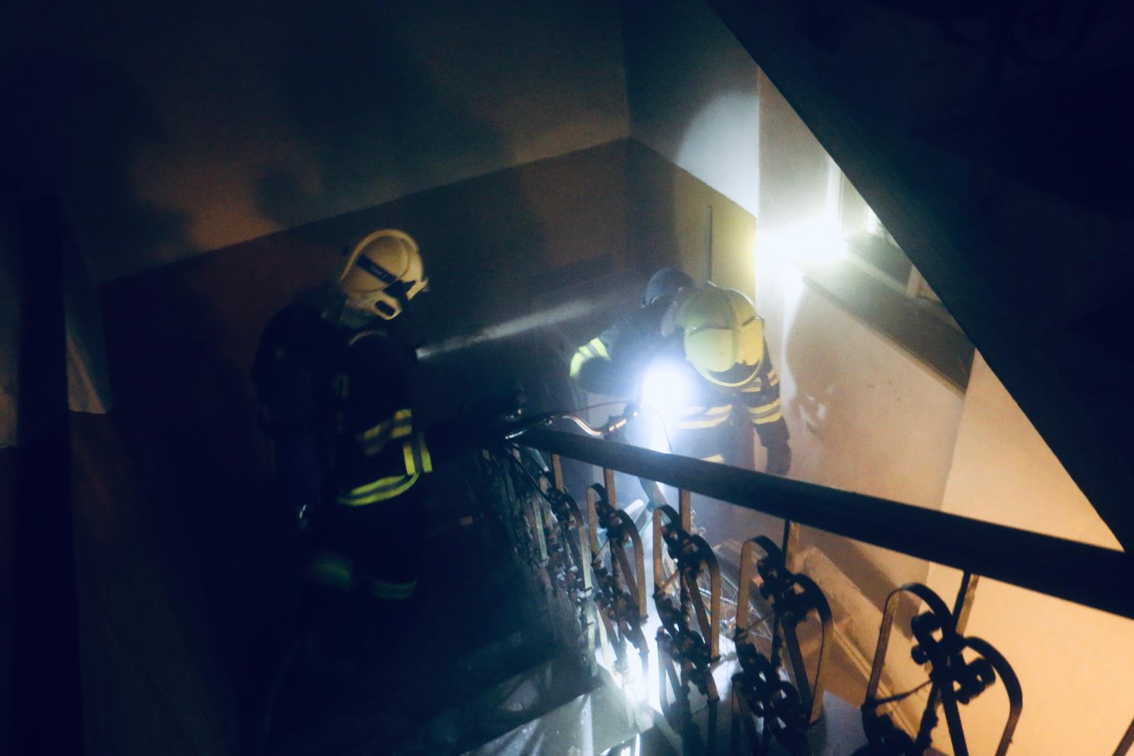 Hasiči po příjezdu vstoupily do společných chodeb v dýchací technice, ze vstupních dveří a některých oken se