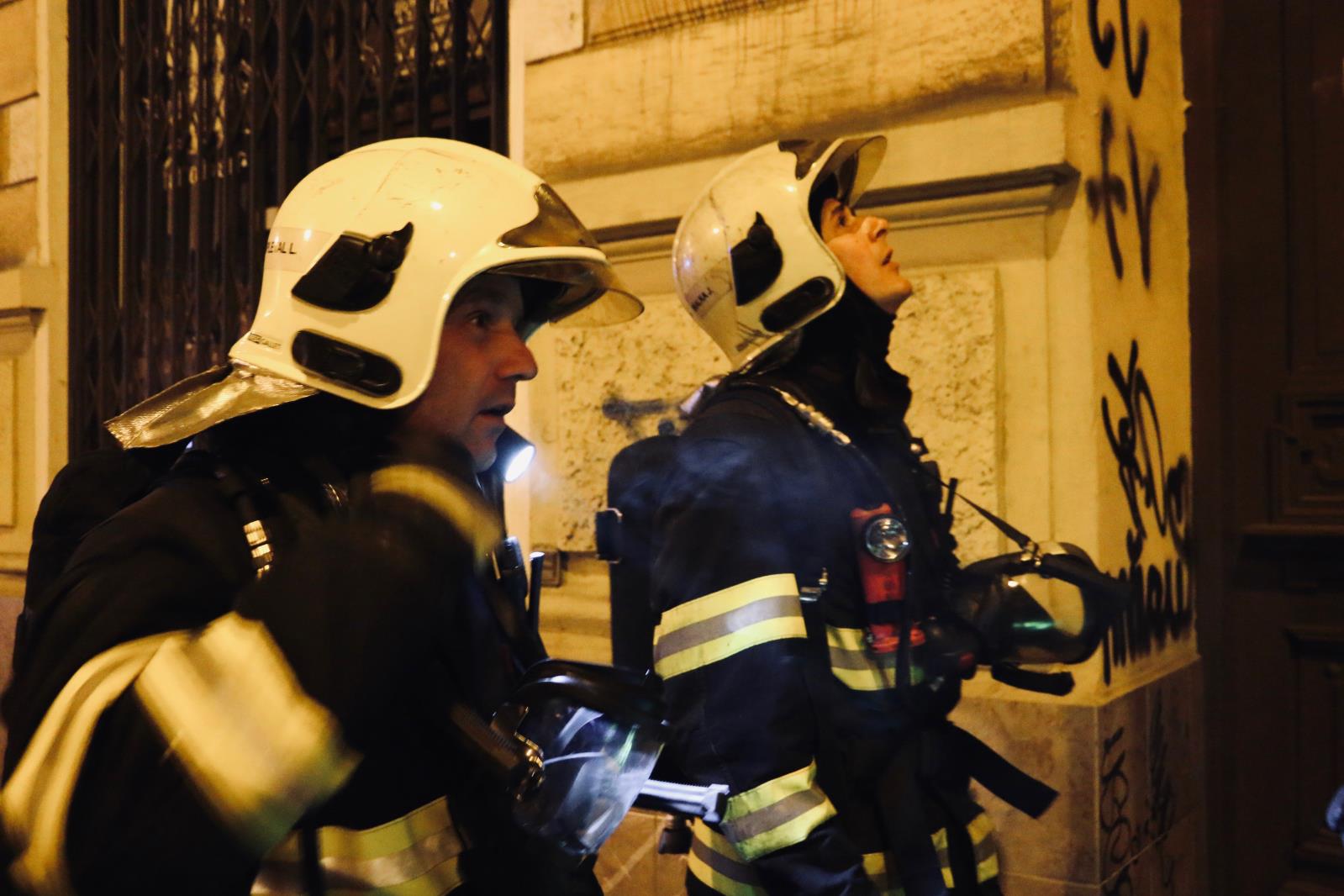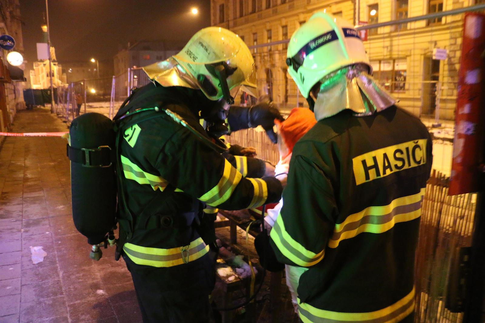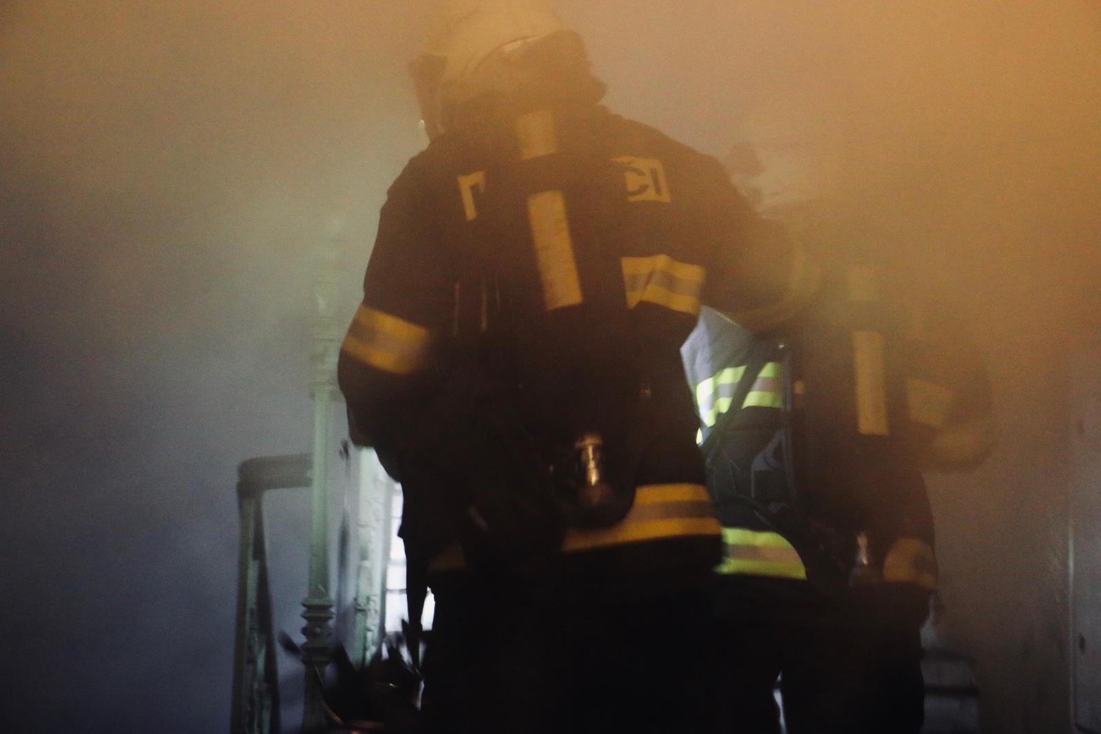 Hasiči po příjezdu vstoupily do společných chodeb v dýchací technice, ze vstupních dveří a některých oken se