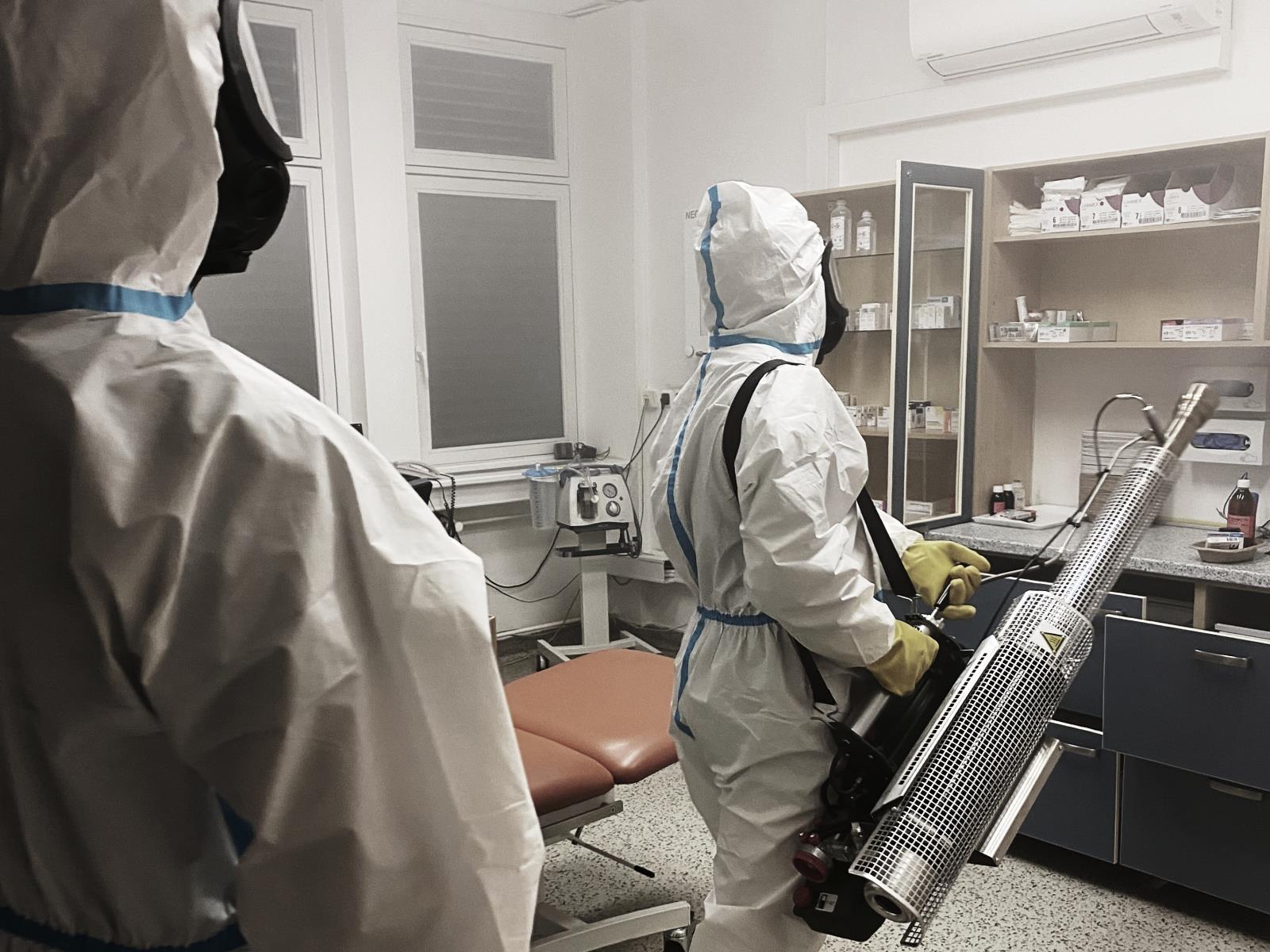 Pouhých 40 sekund stačí, abychom dezinfikovali místnost velikou jako školní třída. A to díky takzvanému mlhovači, který nám pomáhá s dekontaminací odběrových stanů či prostor zdravotnických zařízení, kde může hrozit nákaza koronavirem.