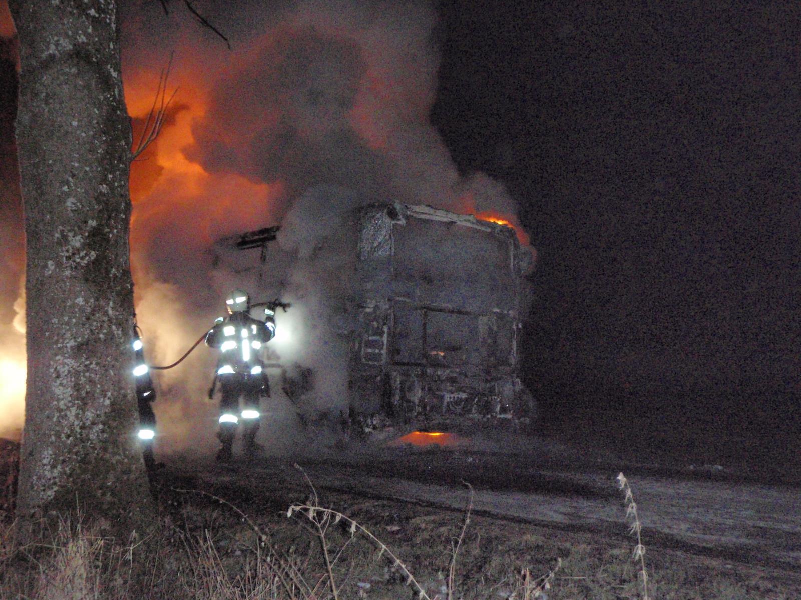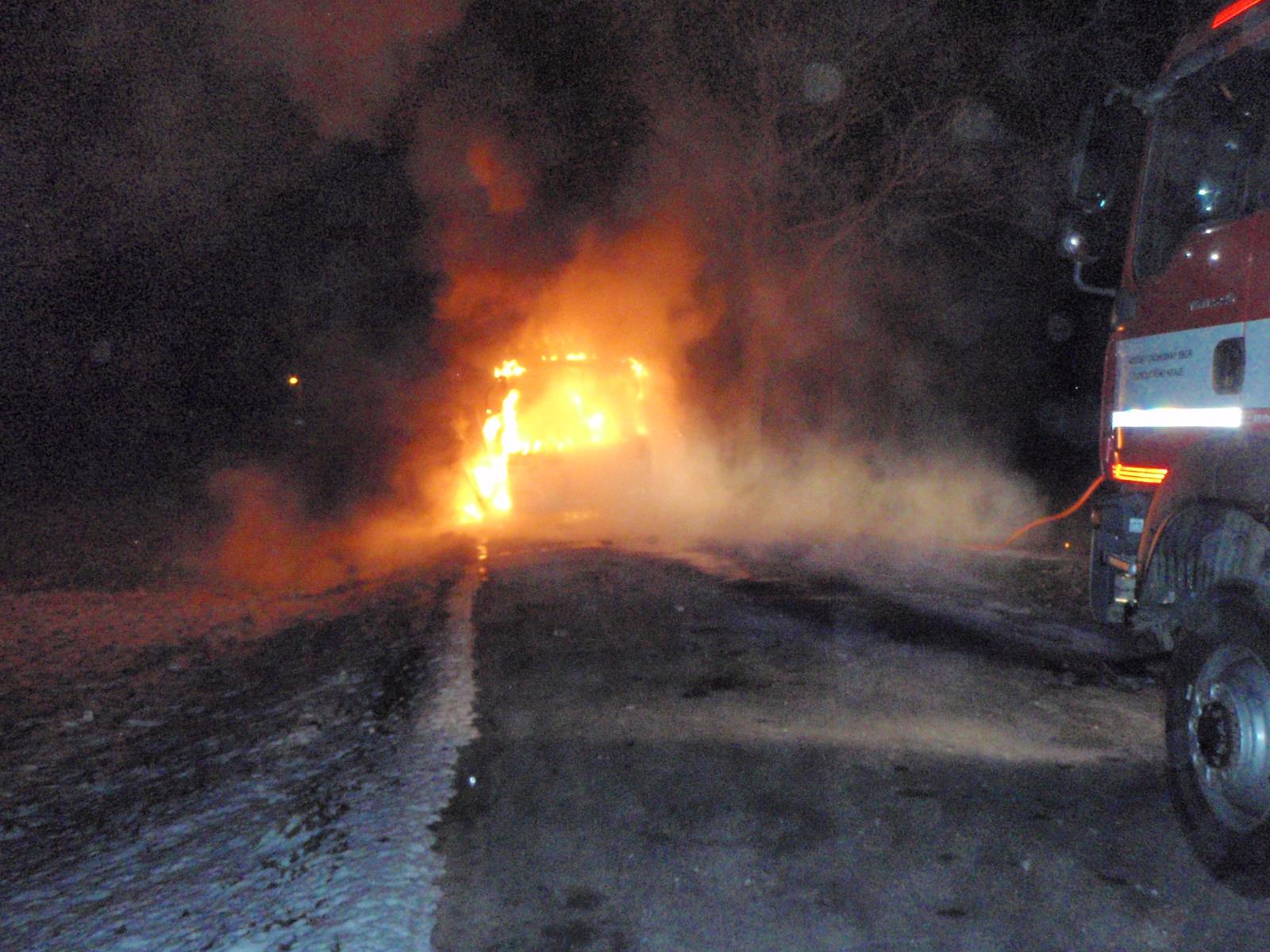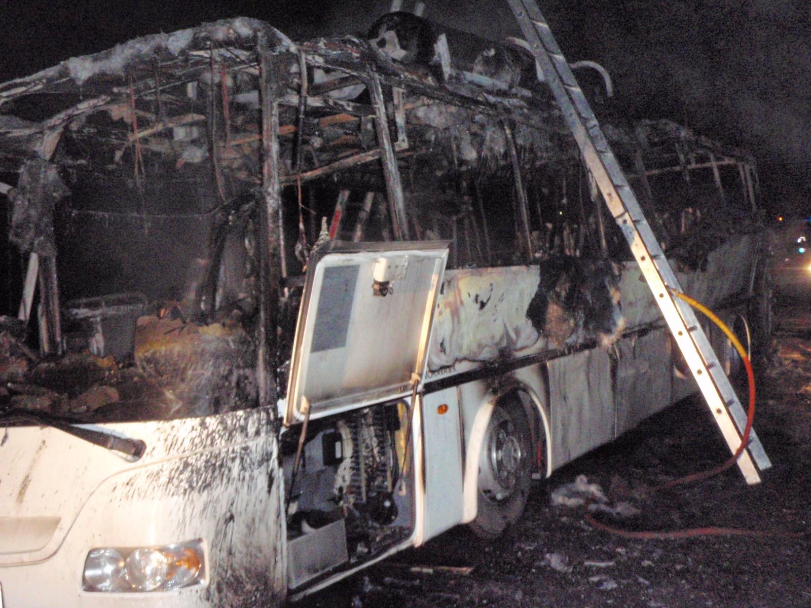 Ranní požár autobusu na Šumpersku