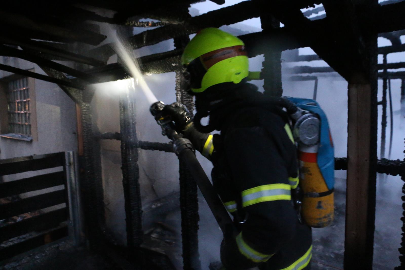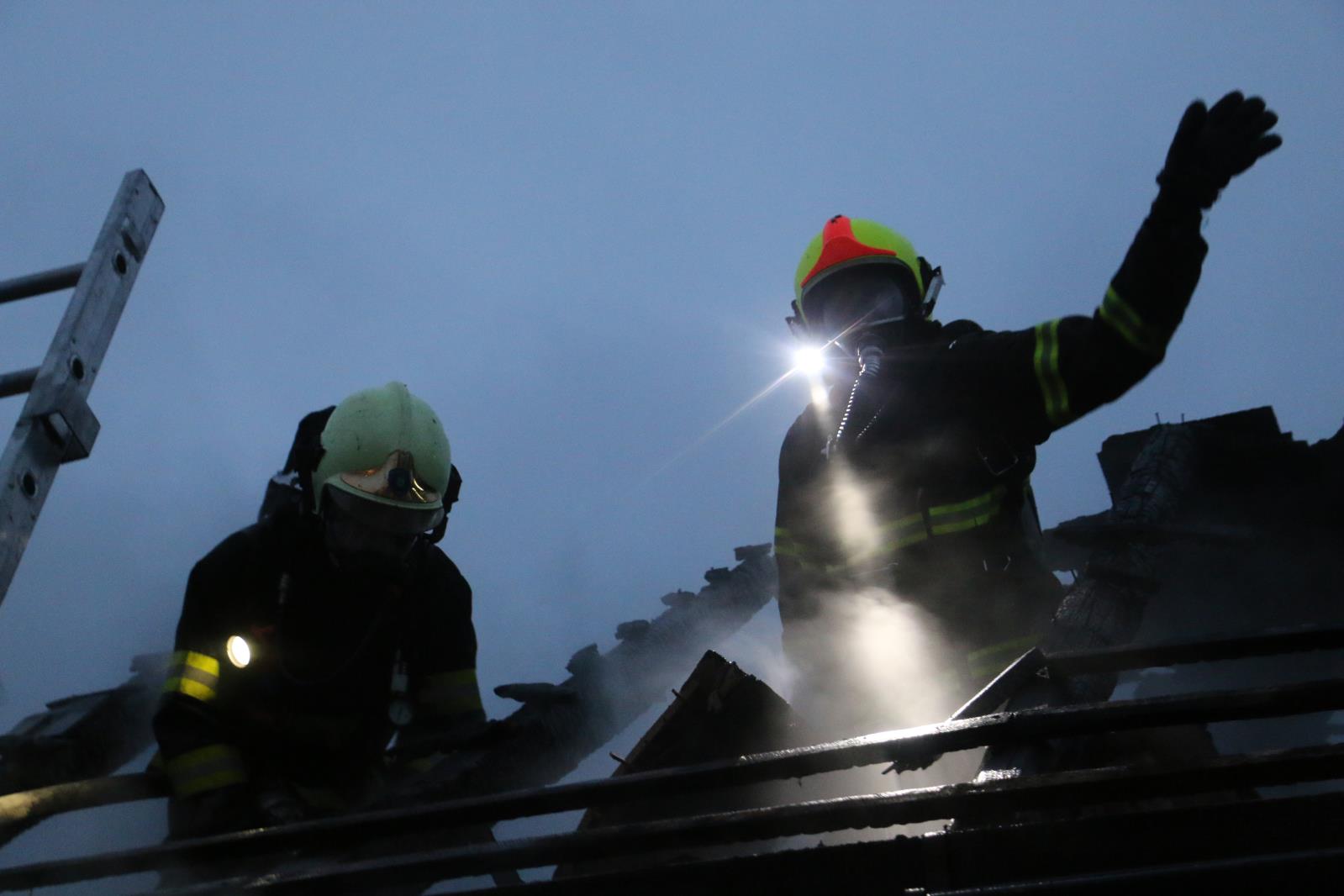 Jednotky postupně požářiště procházejí, dohašují menší ohniska a rozebírají vyhořelou střešní konstrukci. Na volném prostranství následně dohašují požárem zasažený v půdě uskladněný materiál. Co stojí za příčinou vzniku požáru je aktuálně v šetření, výši škody prozatím majitel přesně nevyčíslil. Vše se naštěstí obešlo bez zranění osob.