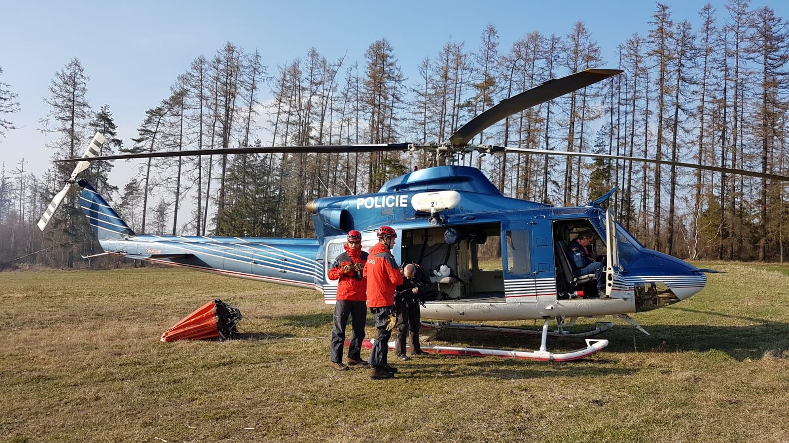 Rozsáhlý lesní požár pomáhal likvidovat i vrtulník PČR