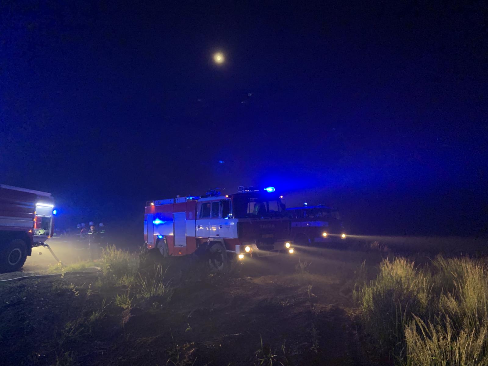 V tuto chvíli je požár rozdělen na dva úseky a čerpací stanoviště, probíhá intenzivní procházení velké plochy požářiště, rozhrabávání a prolévání vodou. Zásah je stěžován nejen terénem, v nočních hodinách jej nepříjemně ovlivňoval silný vítr a nyní i pohledem klimatu vysoké teploty.