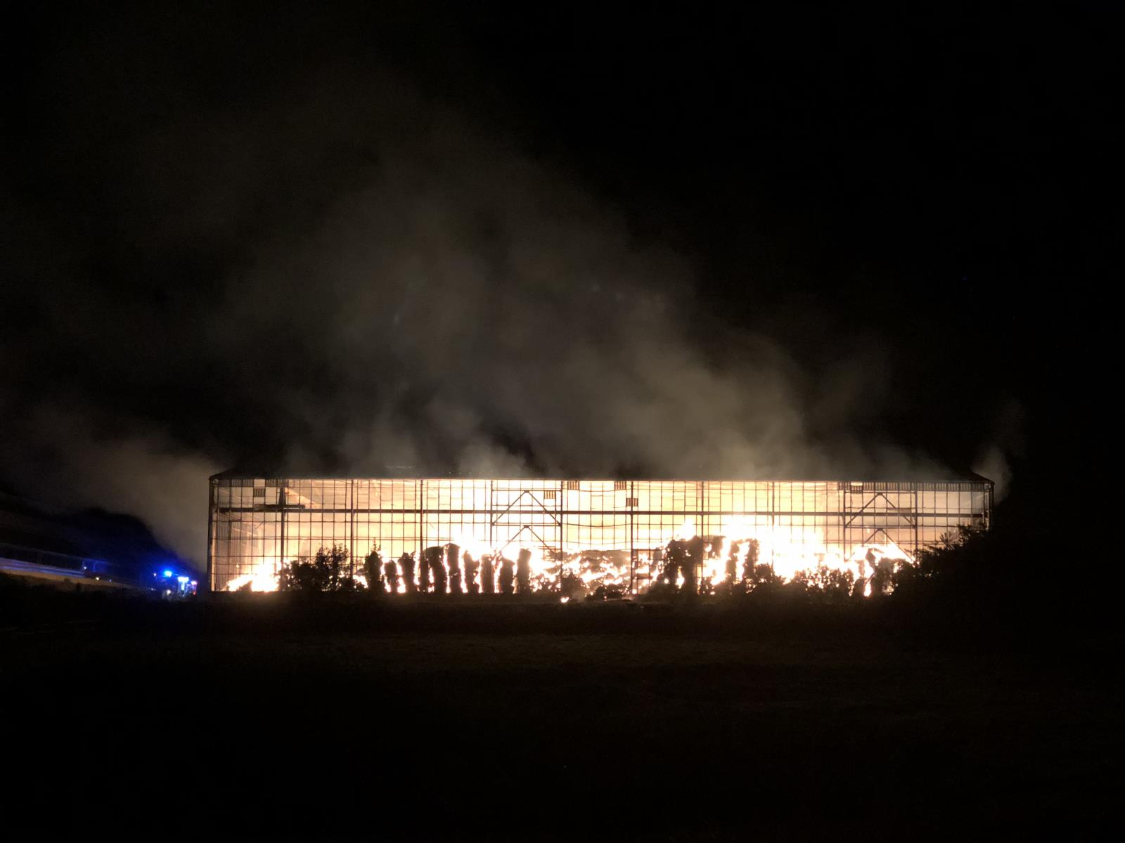 požár skladovací haly v Protivanově na Prostějovsku. Dle oznámení v tísňovém hovoru nebylo původně patrné co přesně v dané oblasti s viditelnou září a hustým kouřem hoří.